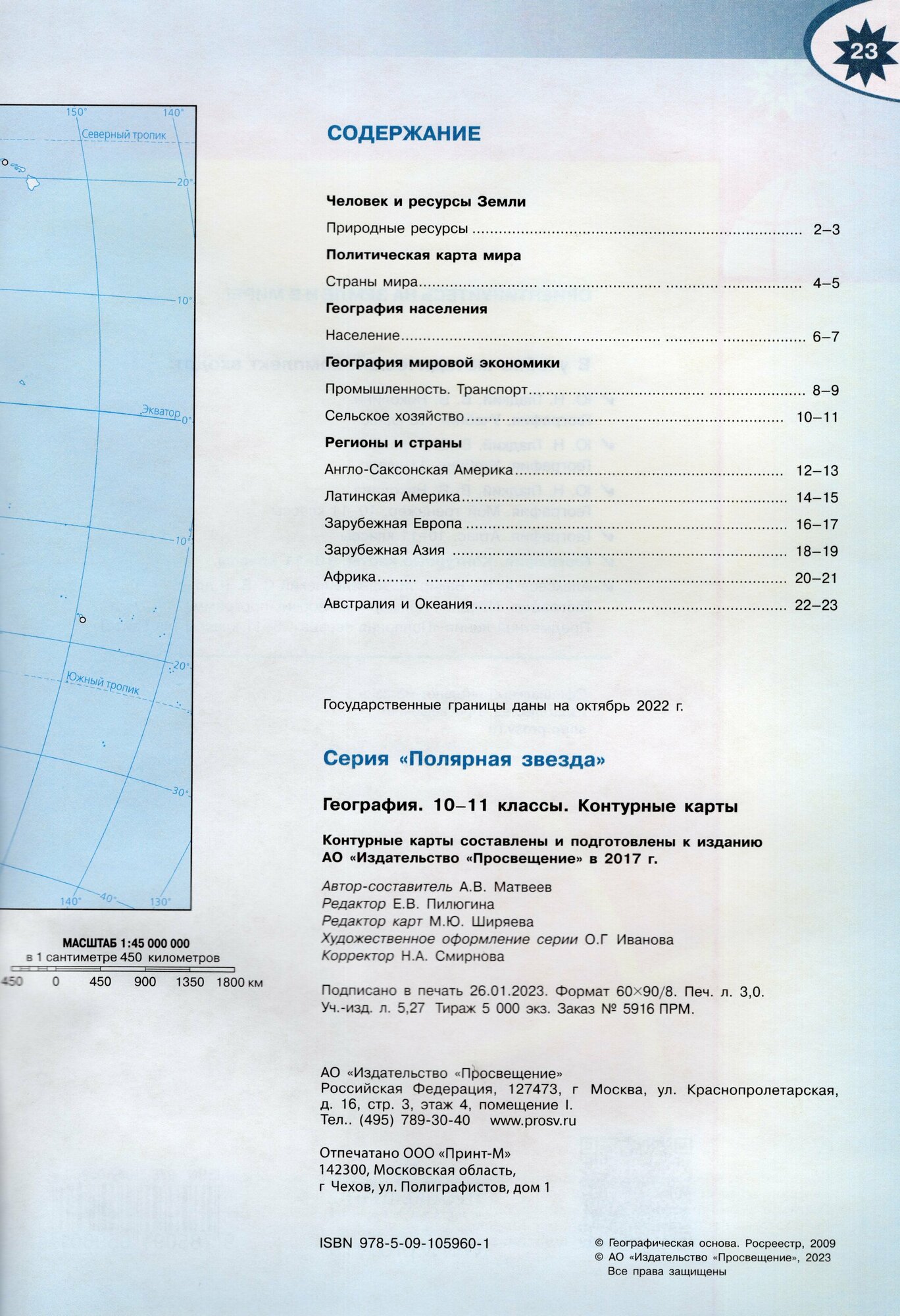 География. 10-11 классы. Контурные карты (Матвеев А. В.); Просвещение, 2024