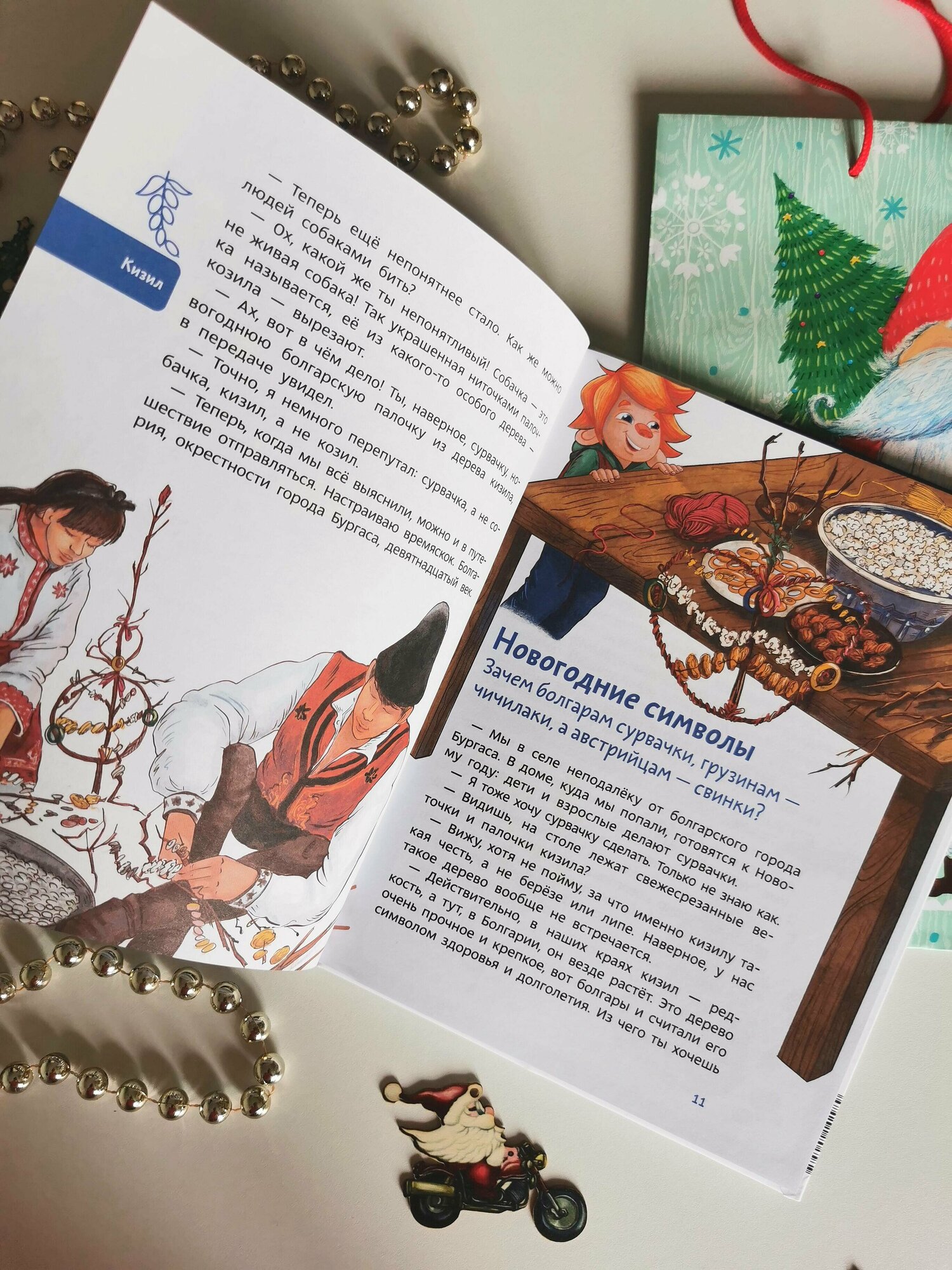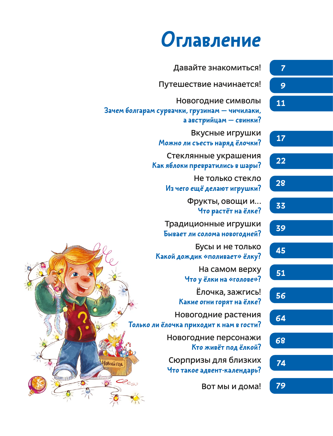 Из чего делали первые елочные игрушки? Кто такой Йоулупукки? Съедобный ли у елочки наряд? Как украшают дома и готовятся к празднику в разных странах? Зачем болгарам сурвачки, а грузинам — чичилаки?В новой книге серии детских энциклопедий Чевостик и дядя Кузя отправятся в увлекательное путешествие и узнают, как менялись новогодние украшения с течением времени, кто изобрел гирлянду и из каких материалов изготавливали мишуру. Они увидят, как готовятся к главному празднику зимы в России и в других странах, посетят настоящую фабрику елочных игрушек, где создаются стеклянные шары, и привезут домой двенадцать необычных украшений. А еще юные читатели вместе с Чевостиком научатся мастерить уникальные праздничные поделки, которыми смогут порадовать родных и близких!Кто такой Чевостик?Чевостик — симпатичный герой из известного аудиопроекта. Сегодня ребята знают его по энциклопедиям. В серии продолжают выходить книги, которые объясняют ребенку устройство мира.Дети гораздо лучше воспринимают информацию, когда о мире им рассказывает какой-нибудь сказочный персонаж. Именно поэтому девчонки и мальчишки так любят подобные энциклопедии.Чевостик вместе с дядей Кузей совершает удивительные путешествия в мир наук: физики, химии, астрономии, анатомии, геологии и других. Он рассказывает детям о великих географических открытиях, покорении космоса и волшебных химических превращениях.Для кого эта книга:Для любознательных детей от 6 лет.Для всех-всех фанатов Чевостика.Для дошкольников и младших школьников.