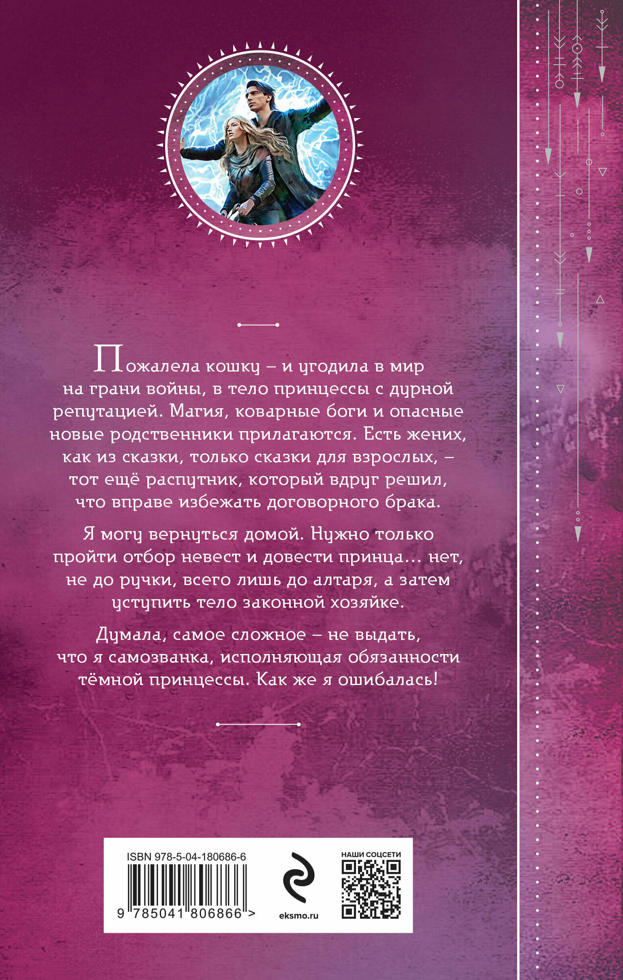 Пожалела кошку — и угодила в мир на грани войны, в тело принцессы с дурной репутацией. Магия, коварные боги и опасные новые родственники прилагаются. Есть жених, как из сказки, только сказки для взрослых, — тот еще распутник, который вдруг решил, что вправе избежать договорного брака. Я могу вернуться домой. Нужно только пройти отбор невест и довести принца… нет, не до ручки, всего лишь до алтаря, а затем уступить тело законной хозяйке. Думала, самое сложное — не выдать, что я самозванка, исполняющая обязанности темной принцессы. Как же я ошибалась!