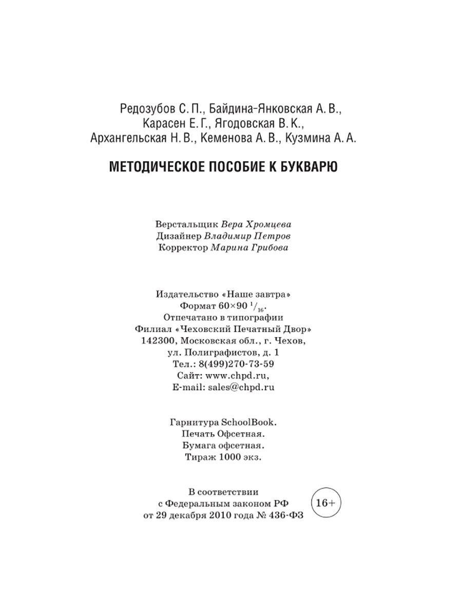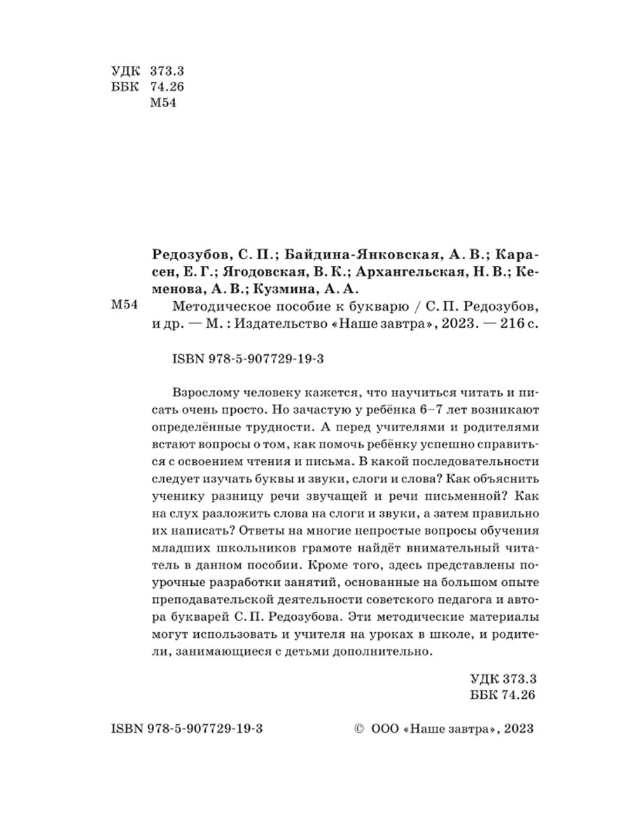 Методическое пособие к букварю (Сергей Поликарпович Редозубов; Байдина-Янковская Александра Владимировна; Карлсен Елизавета Георгиевна; Ягодовская Вера Константиновна; Архангельская Наталья Викторовна; Кеменова Александра Васильевна; Кузьмина Ася Анатольевна); Наше Завтра, 2023
