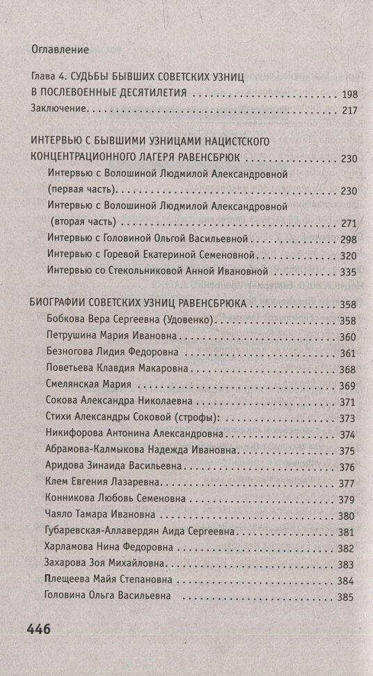 В книге рассматривается история создания и функционирования концентрационного лагеря и его филиалов, различные категории заключенных — политические, уголовные, асоциальные и узницы по расовым мотивам, повседневная жизнь узниц и их эксплуатация внутри лагеря, на эсэсовских предприятиях и частных фирмах. Особое внимание автор уделяет стратегиям выживания узниц-женщин в концентрационном лагере Равенсбрюк.