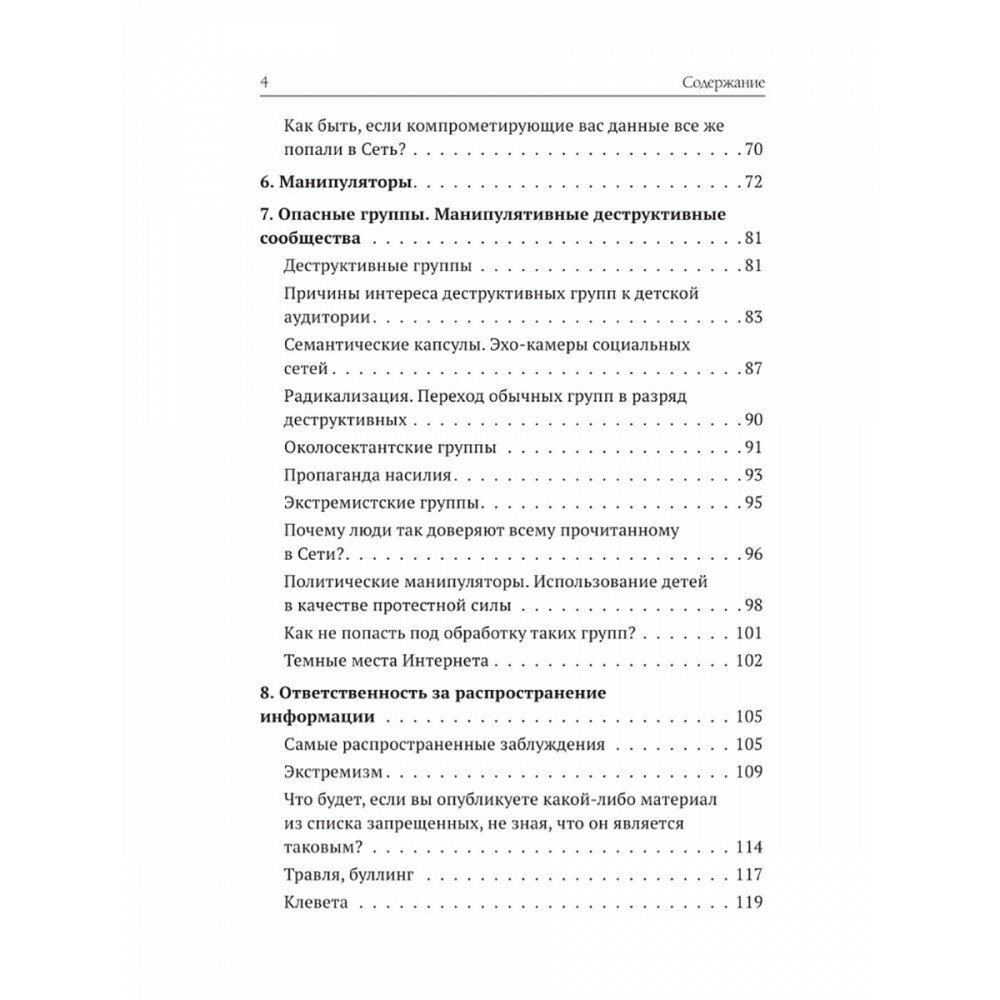 Данное пособие адресовано детям и их родителям и представляет собой краткий курс выживания в сети. Сегодня Интернет— один из самых доступных способов исследования мира вокруг себя. Но он таит в себе не только большие возможности, но и значительные риски, порой скрытые от начинающего пользователя. Пособие является результатом многолетней работы автора по изучению влияния деструктивного контента на детей. Читатель найдет здесь ответы на многие вопросы об интернет-манипулировании, о поисковых системах, о "Википедии", о шантаже и вымогательстве, об интернет-мошенничествах и поддельных интернет-магазинах. Как обычные группы переходят в разряд деструктивных? Как оградить детей от буллинга? Почему нельзя полностью доверять информации из сети? Кто и зачем распространяет фейки? И, наконец, какова ответственность за распространение ложной информации?
