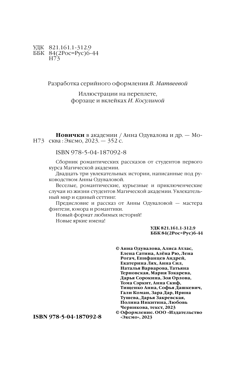 Книга: Новички в академии (Анна Одувалова, Епифанцев Андрей, Сорокина Дарья Михайловна, Лях Екатерина Геннадьевна, Токарева Мария Юрьевна, Терновская Татьяна); ООО "Издательство "Эксмо", 2023