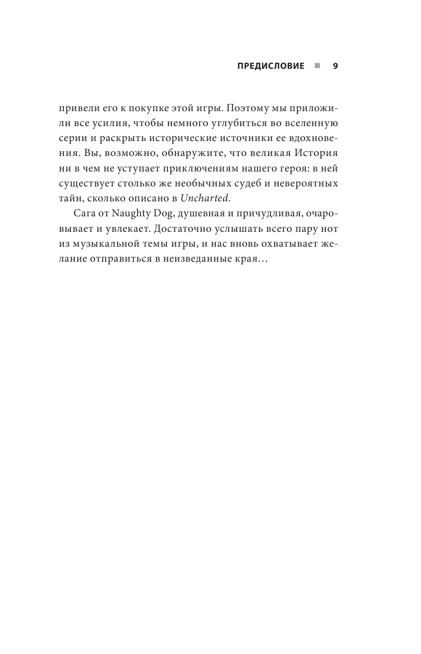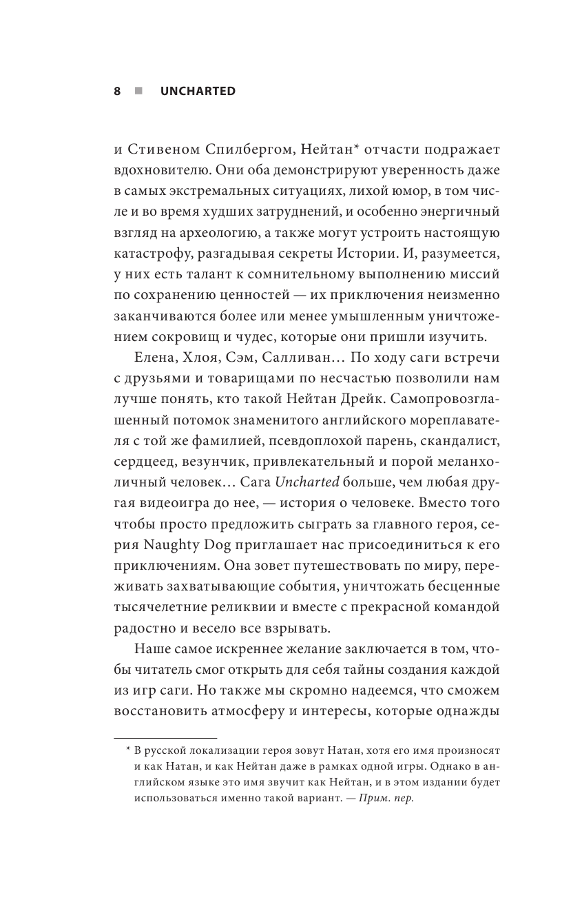 «Серия Uncharted по праву считается одним из главных сокровищ игровой индустрии. А история ее разработки, описанная в этой книге, оказалась такой же захватывающей, как и приключения Нейтана Дрейка — молодого авантюриста без страха, упрека и совести». — Константин Подстрешный, «Навигатор игрового мира»