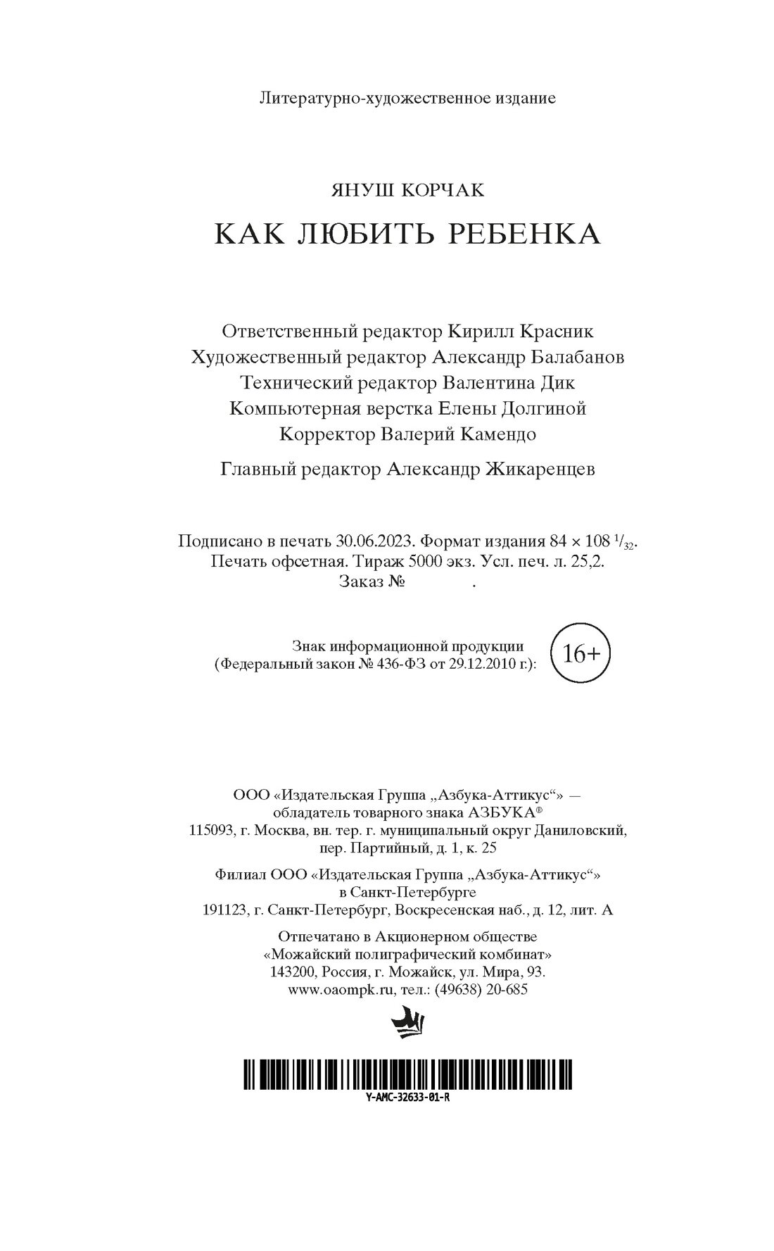 Книга: Как любить ребенка (Корчак Януш); Азбука Издательство, 2023