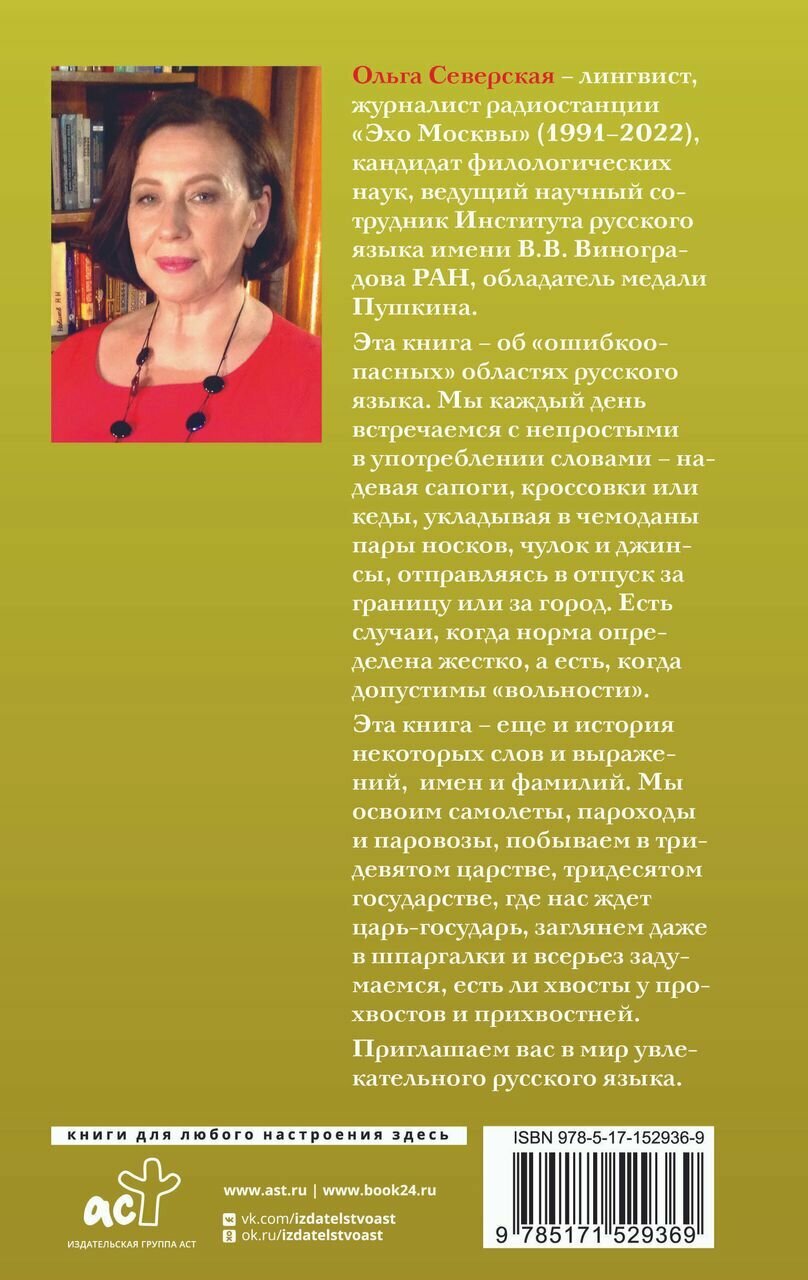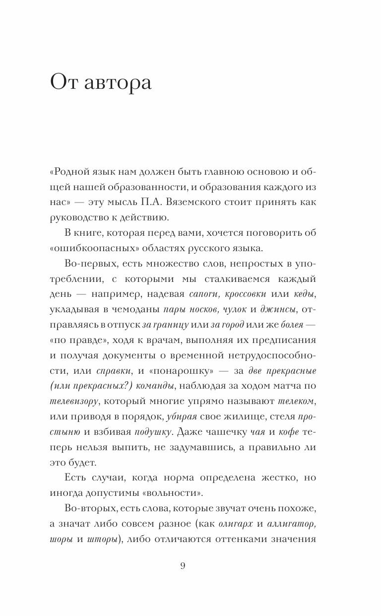 Эта книга – об "ошибкоопасных" областях русского языка. Мы каждый день встречаемся с непростыми в употреблении словами – надевая сапоги, кроссовки или кеды, укладывая в чемоданы пары носков, чулок и джинсы, отправляясь в отпуск за границу или за город. Есть случаи, когда норма определена жестко, а есть, когда допустимы "вольности".