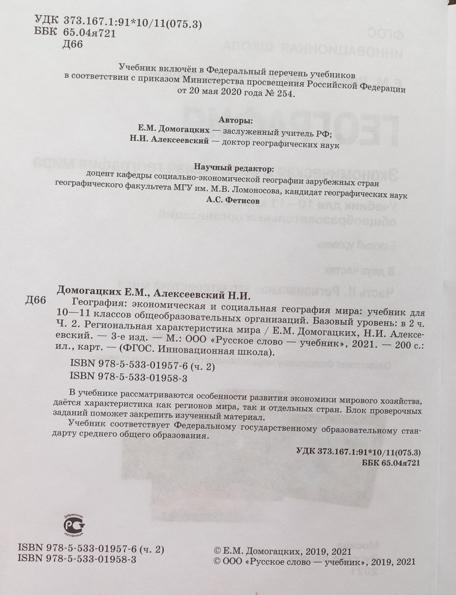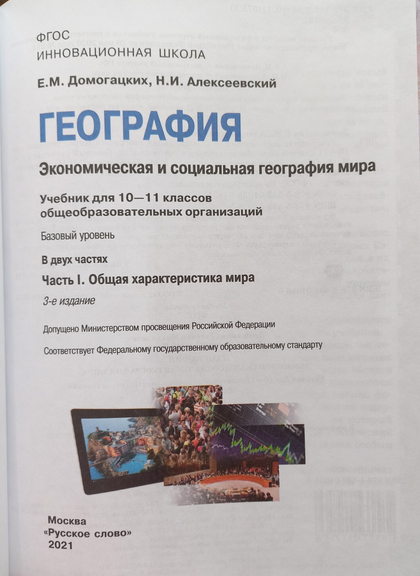 География. Экономическая и социальная география мира. В двух частях. Часть II. Региональная характеристика мира. 10-11 классы. Учебник. Базовый уровень (Евгений Михайлович Домогацких, Николай Иванович Алексеевский); Русское слово, 2022
