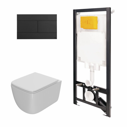 Комплект унитаза с инсталляцией Point Меркурий 886914SLO3+PN41831 с сиденьем Микролифт и Черной матовой клавишей смыва