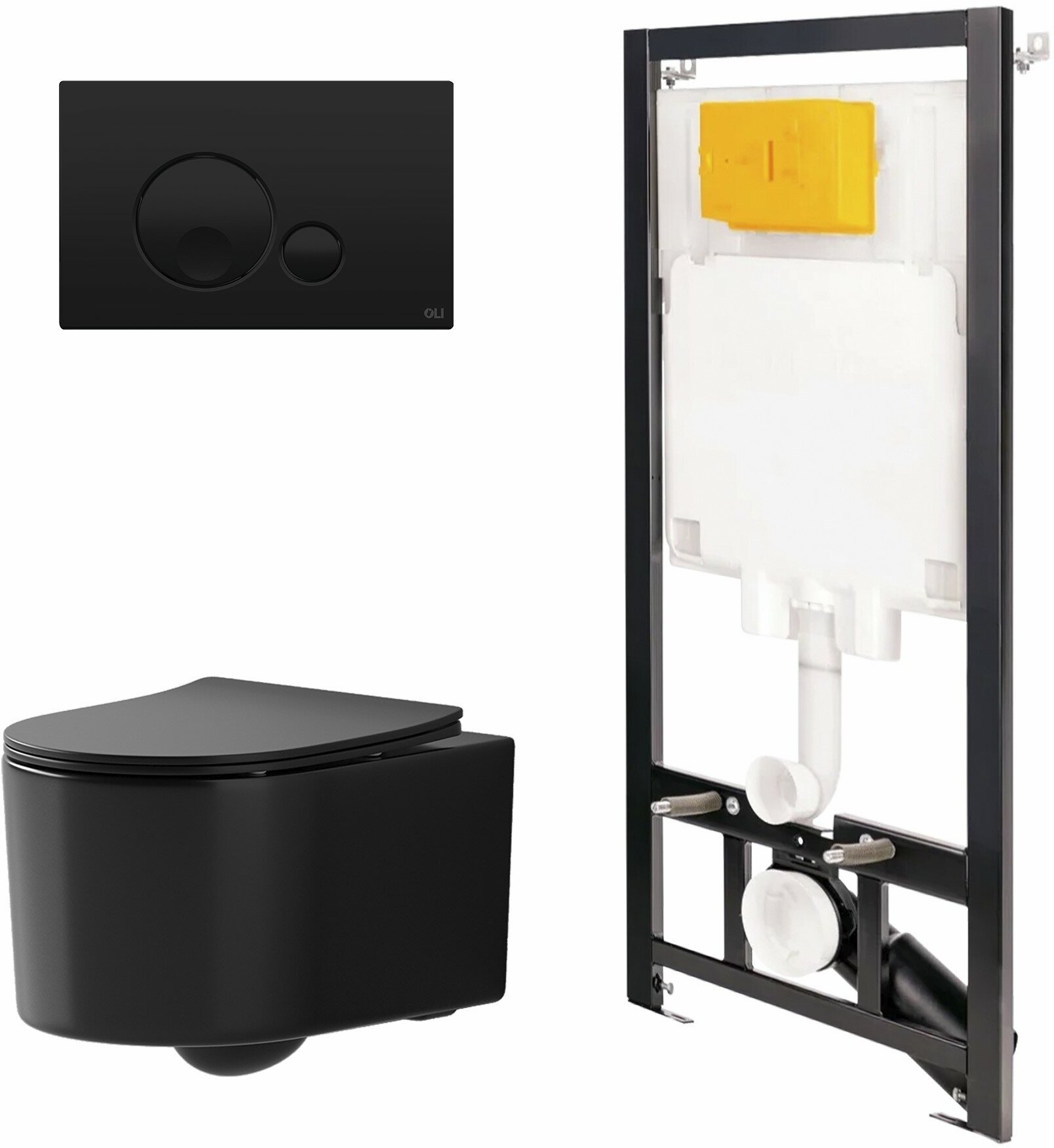 Комплект унитаза с инсталляцией Point Веста 886914GBO3+PN41701BM Черный матовый с сиденьем Микролифт и Черной матовой клавишей смыва