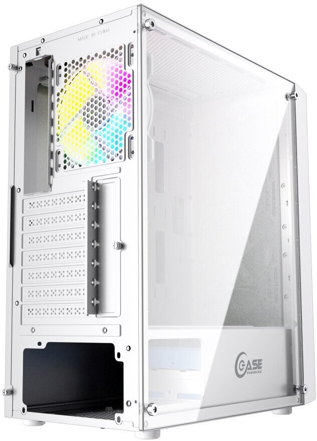 Белый корпус PowerCase Mistral Evo White относится к формату Mid-Tower. Это значит, что внутри можно успешно уместить все необходимые для «геймерской» машины компоненты. В нем объединились стекло, пластик и сталь. Боковые панели фиксируются на винты сбоку.