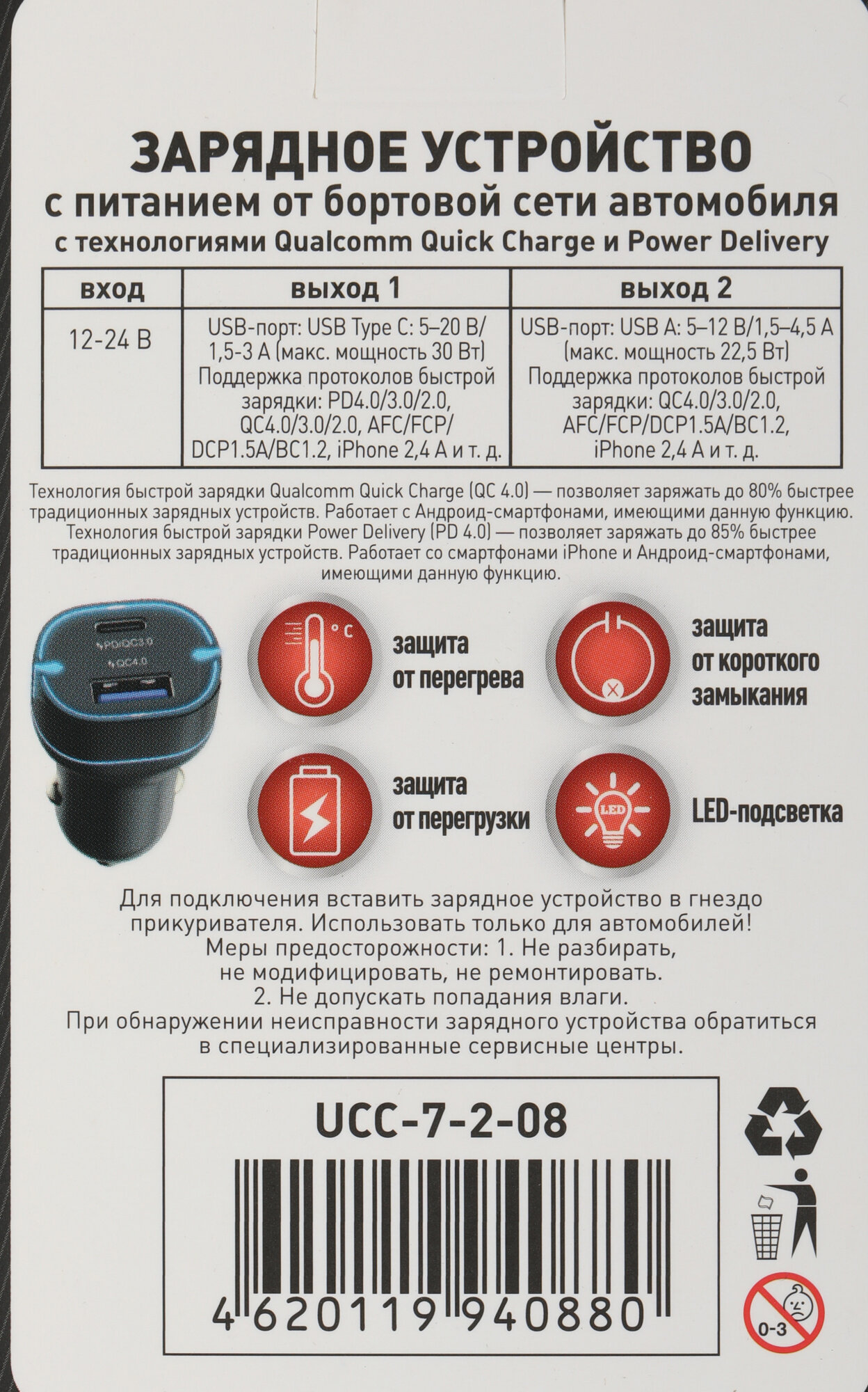 | Тип | Автомобильное зарядное устройство |