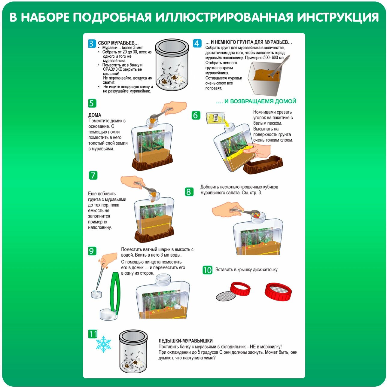 | Состав набора | иллюстрированная инструкция - 1 шт; бутылка - 1 шт; отвинчивающаяся крышка - 1 шт; сетчатые вкладыши - 1 шт; форма стабилизатор основания - 1 шт; пипетка - 1 шт; пинцет - 1 шт; тарелочка для кормления - 1 шт; ватные шарики; песок; наклейки - 1 шт |