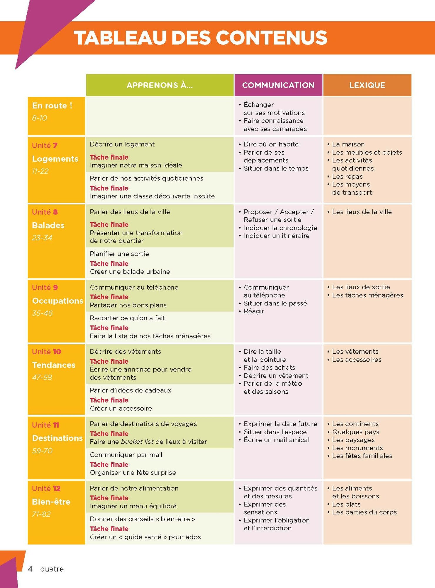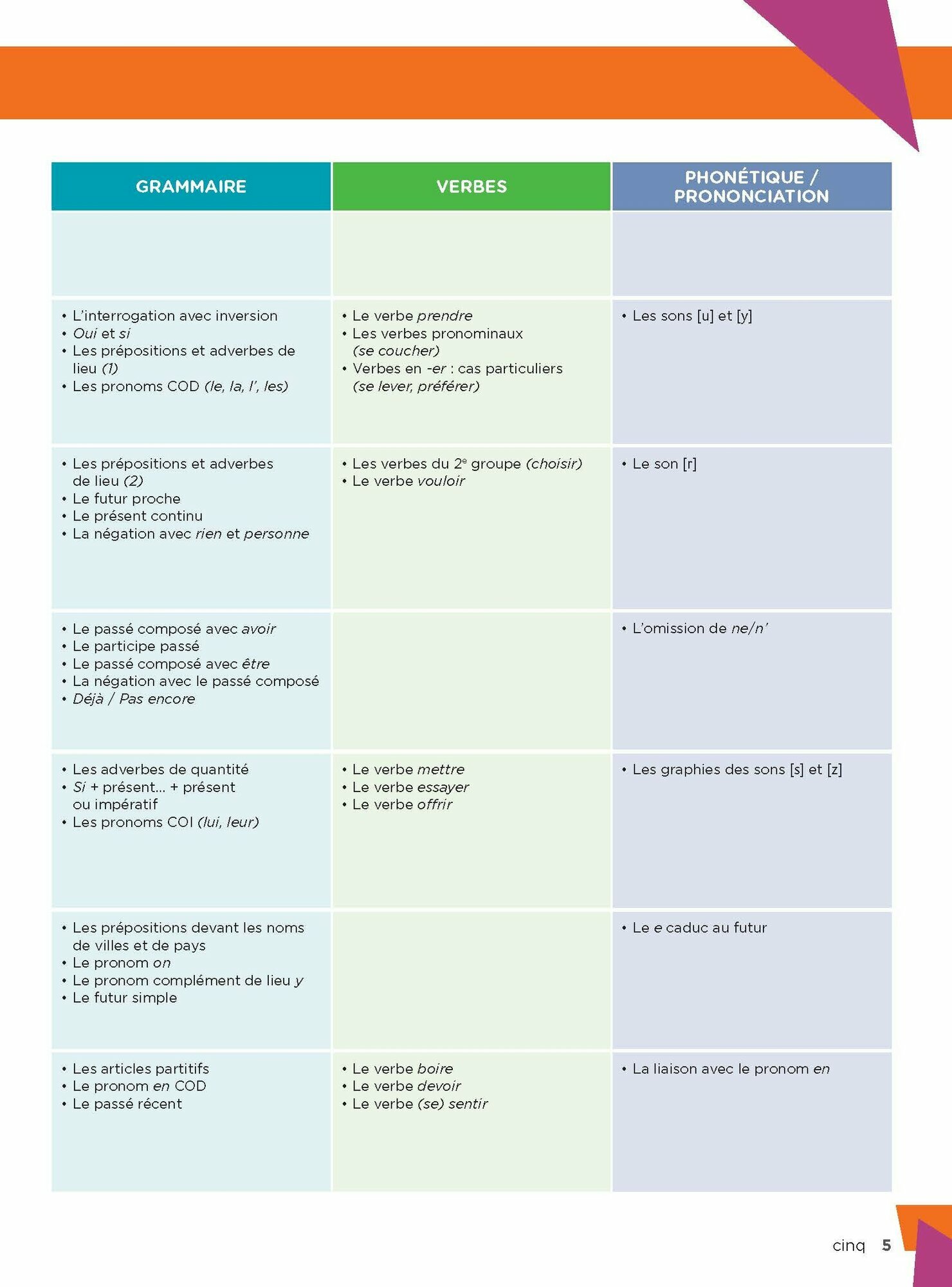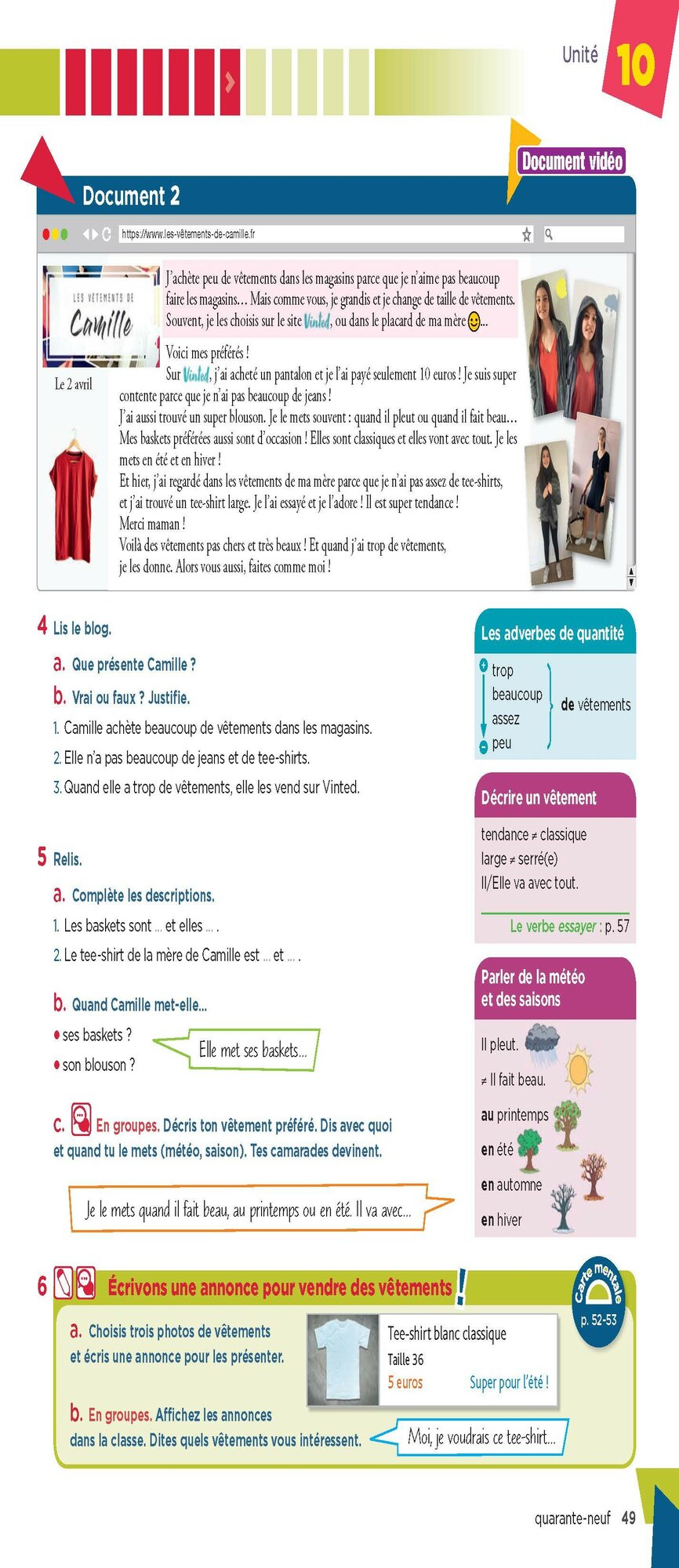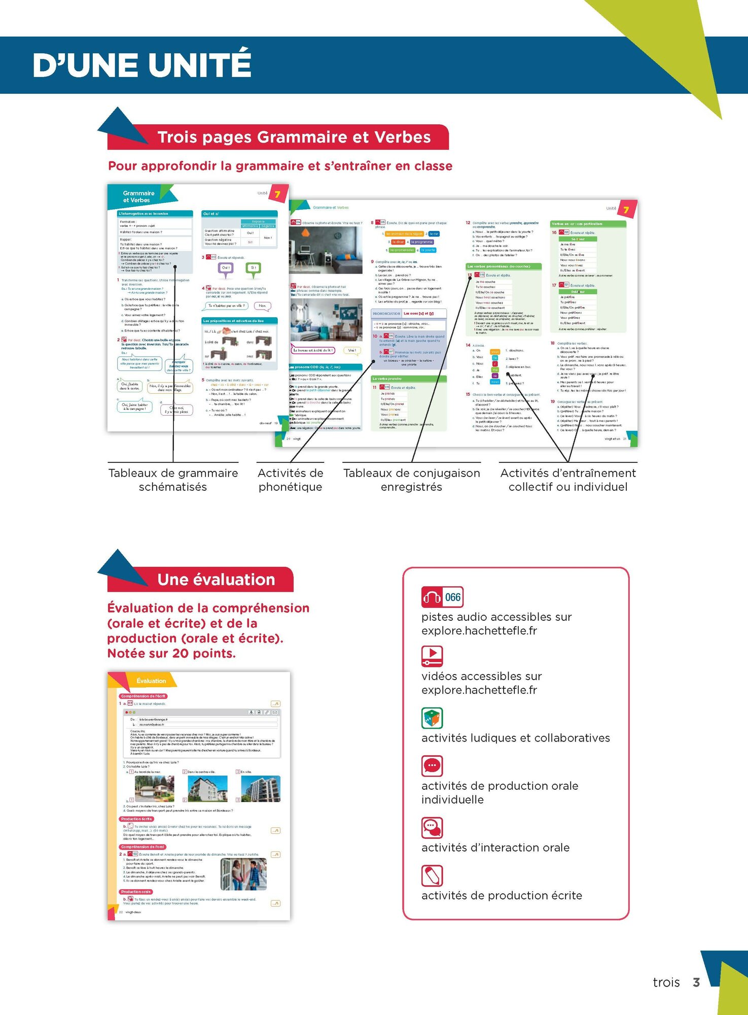 Les activites de systematisations sont variees et les pages « Grammaire et Verbes » sont presentees avec des regles claires dans chacune des unites.