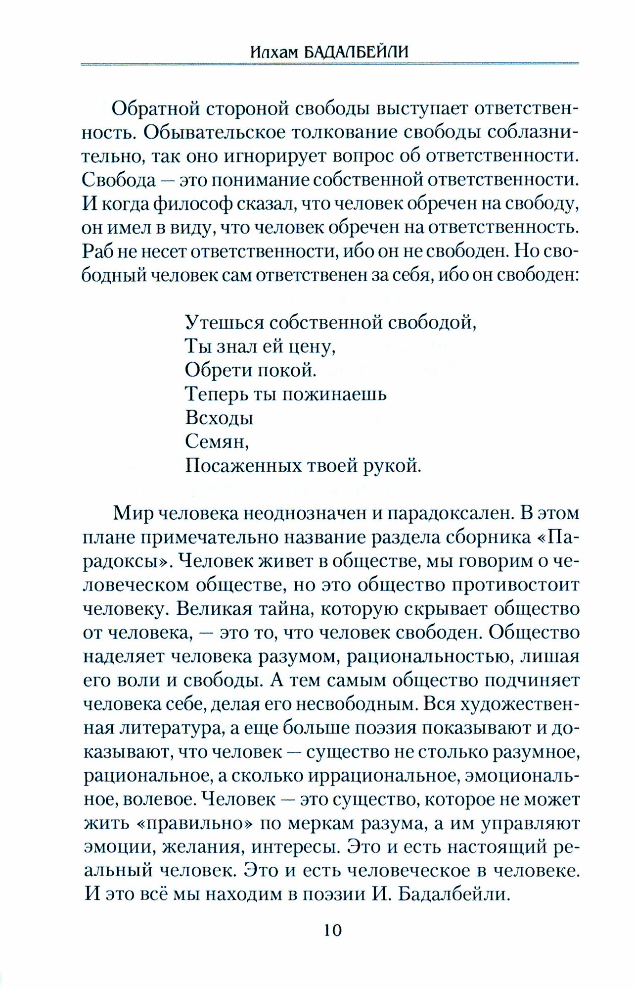 В новую книгу стихов Ильхама Бадалбейли вошли стихотворения и поэмы, как написанные в последние годы, так и лучшие из предыдущих изданий. Поэт остаётся верным своим творческим приоритетам, отображать реальность в ее сложном многообразии, демонстрируя при этом высокие образцы профессионального мастерства.