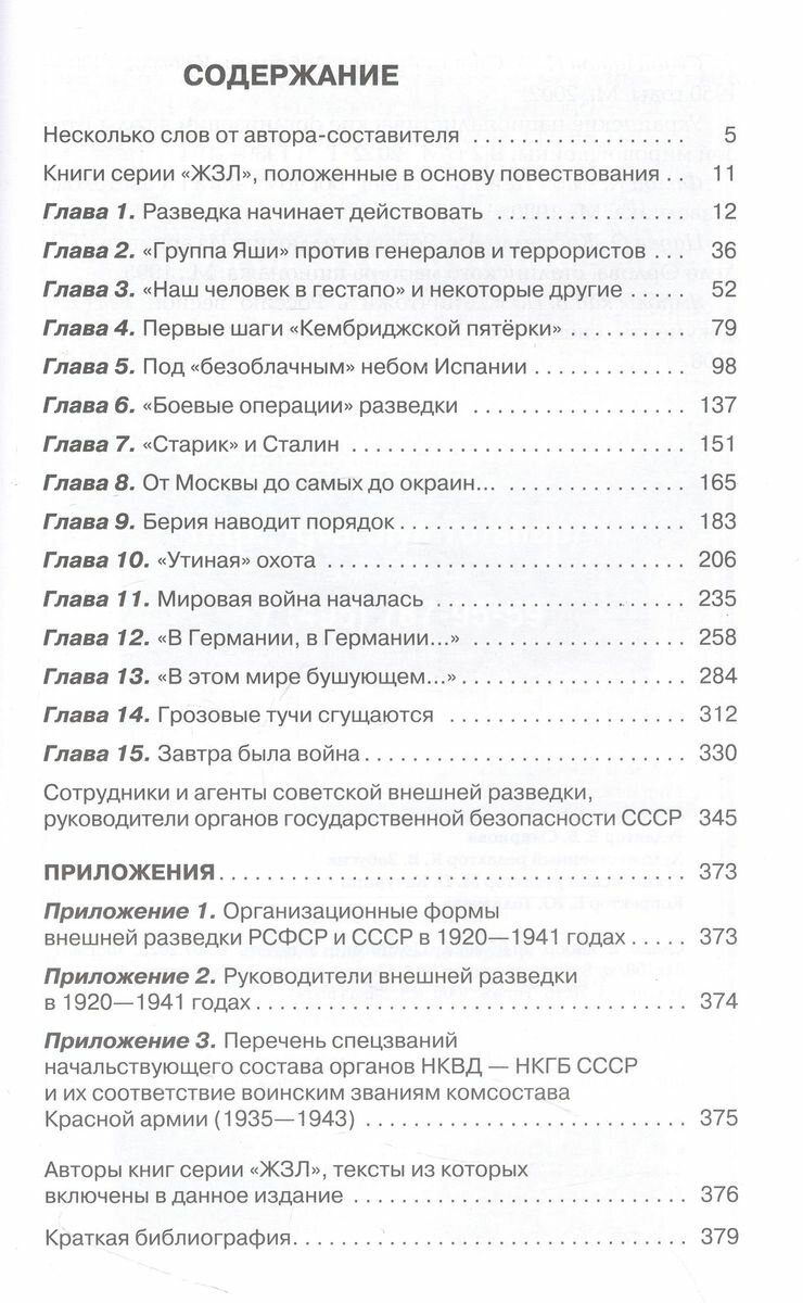 Настоящее издание посвящено истории Службы внешней разведки и сделано на основе книг о разведчиках, вышедших в серии «ЖЗЛ». История разведки впервые представлена в виде связного повествования, из чего можно понять, что все эти люди — сотрудники и агентура разведки — на всех четырёх обитаемых континентах выполняли одну важнейшую общую задачу.