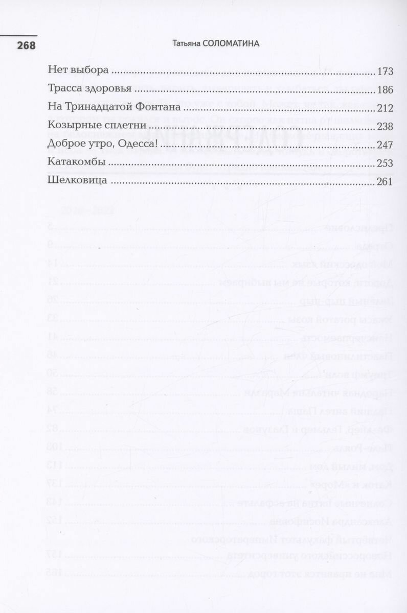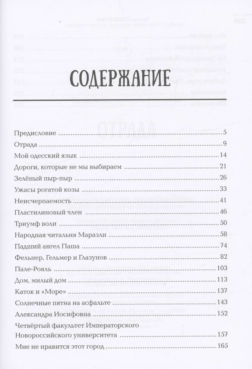 Изумительно написанные воспоминания, разбитые на "куски", как в "Волшебном роге Оберона" Катаева, где каждое эссе, каждый рассказ это "кубик светящейся смальты". В книгу включены уже и знакомые читателю Татьяны Соломатиной эссе, и новые. Эта книга и об Одессе, с ее удивительной историей и ее жителями, это личные истории, переплетенные с историей и жизнью города.