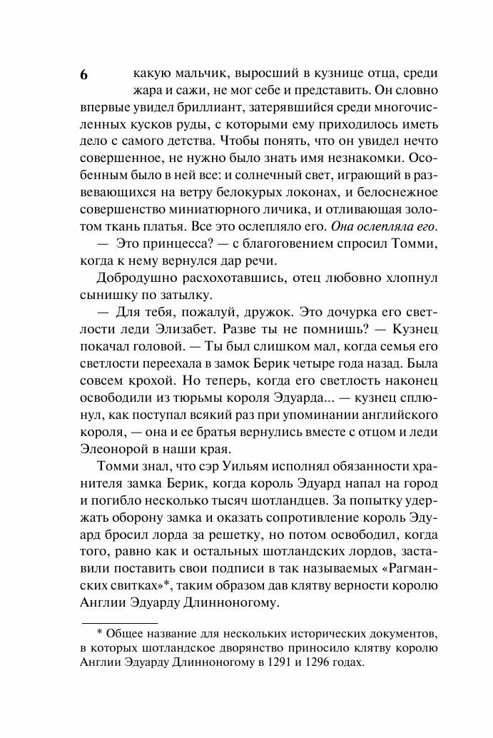 Теперь, когда Шотландия ведет отчаянную борьбу за независимость, Том пытается стать рыцарем и доказать любимой, что ради нее он готов на все. Едва не потеряв Тома, Элизабет осознает, что чувства к нему - не просто дружба. Том, рискуя всем, бросается в омут с головой. Но сможет ли Элизабет, невзирая на все преграды и различия между ними, полностью отдаться любви? Время покажет…