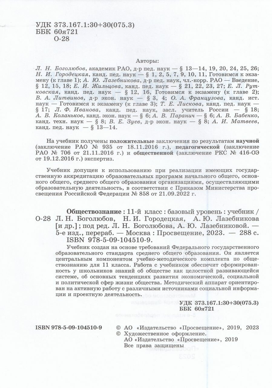 Обществознание. 11 класс. Учебник. Базовый уровень (Боголюбов Леонид Наумович, Жильцова Евгения Ивановна, Городецкая Наталия Ивановна); Просвещение, 2023