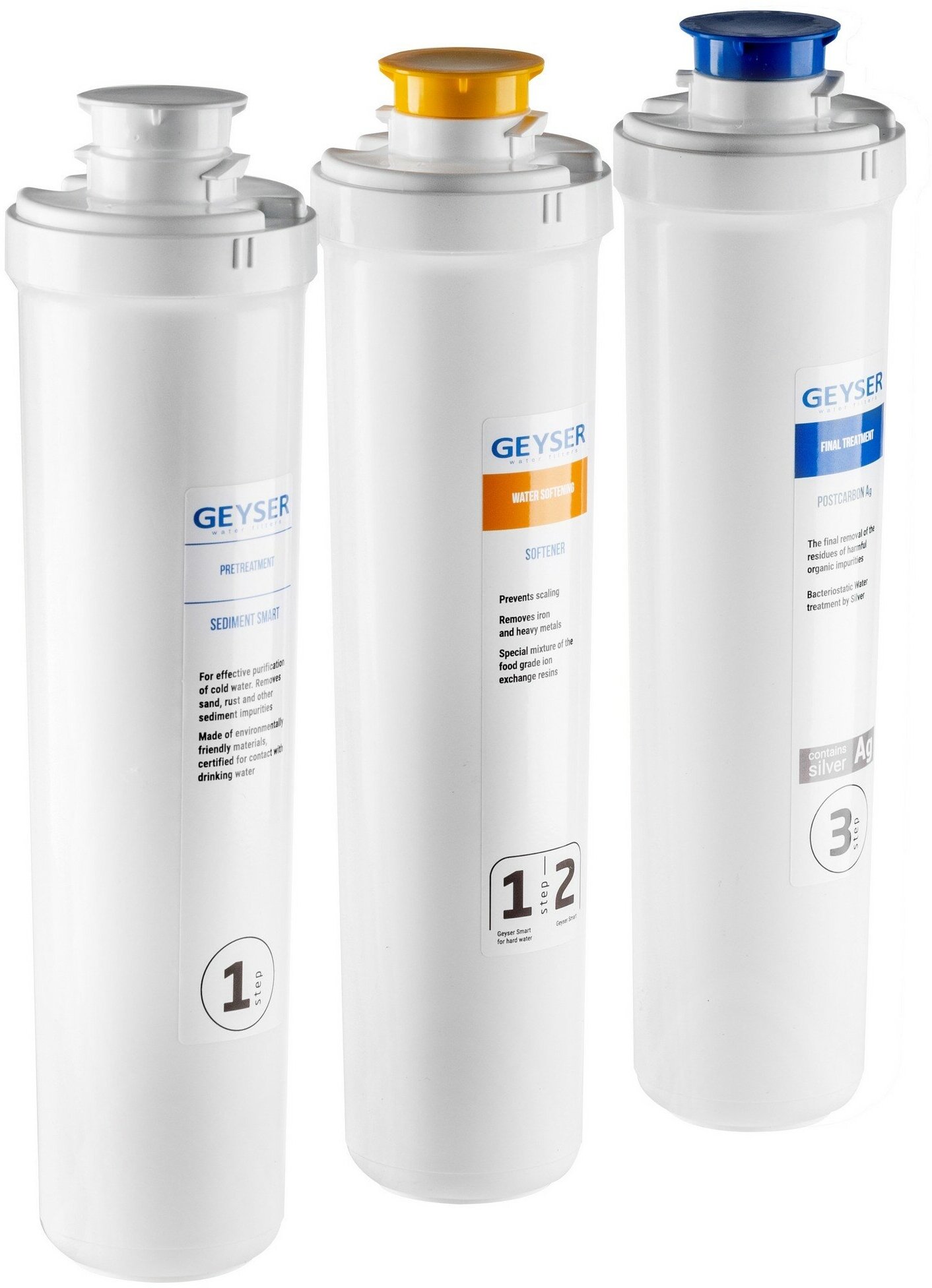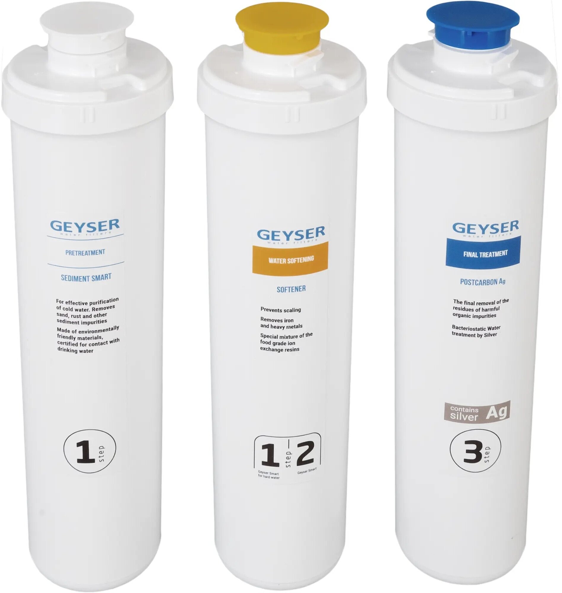 Комплект сменных картриджей Гейзер Смарт для жесткой воды обладает увеличенным ресурсом по удалению ржавчины и накипи. Удаляет накипь и ржавчину, защищает от бактерий, насыщает воду кальцием. Производительность: 120 л/час.
