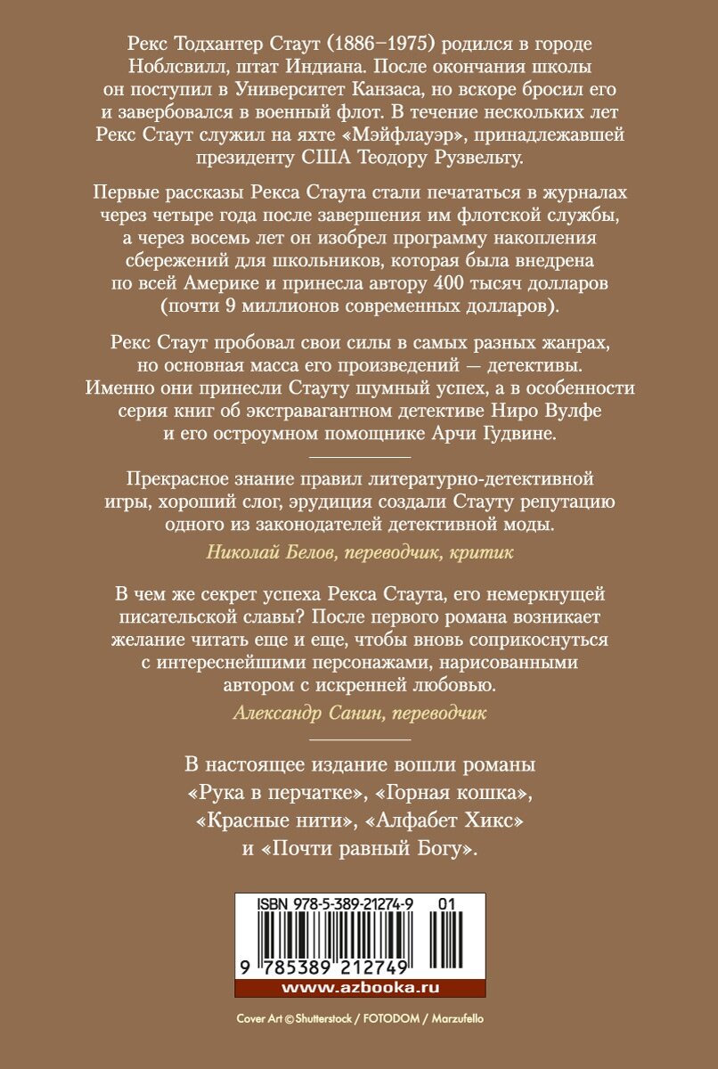 Завершающий том в собрании сочинений признанного классика детективной литературы Рекса Стаута. Книга получилась самой объёмной - в неё вошли пять романов, кстати, к самым любимым персонажам Стаута, Ниро Вульфу и Арчи Гудвину, эти произведения не имеют отношения. Тем не менее, эти романы не менее интересны, чем прославленный цикл с Вульфом и Гудвиным; имеют крепкую детективную интригу и захватывающий сюжет.