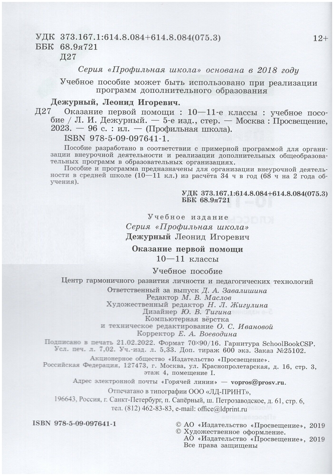 Сервис сравнения цен СкидкаГИД предлагает сравнить цены на товар «Книга: Оказание первой помощи. 10-11 классы. Учебное пособие (Дежурный Леонид Игоревич); Просвещение, 2023»