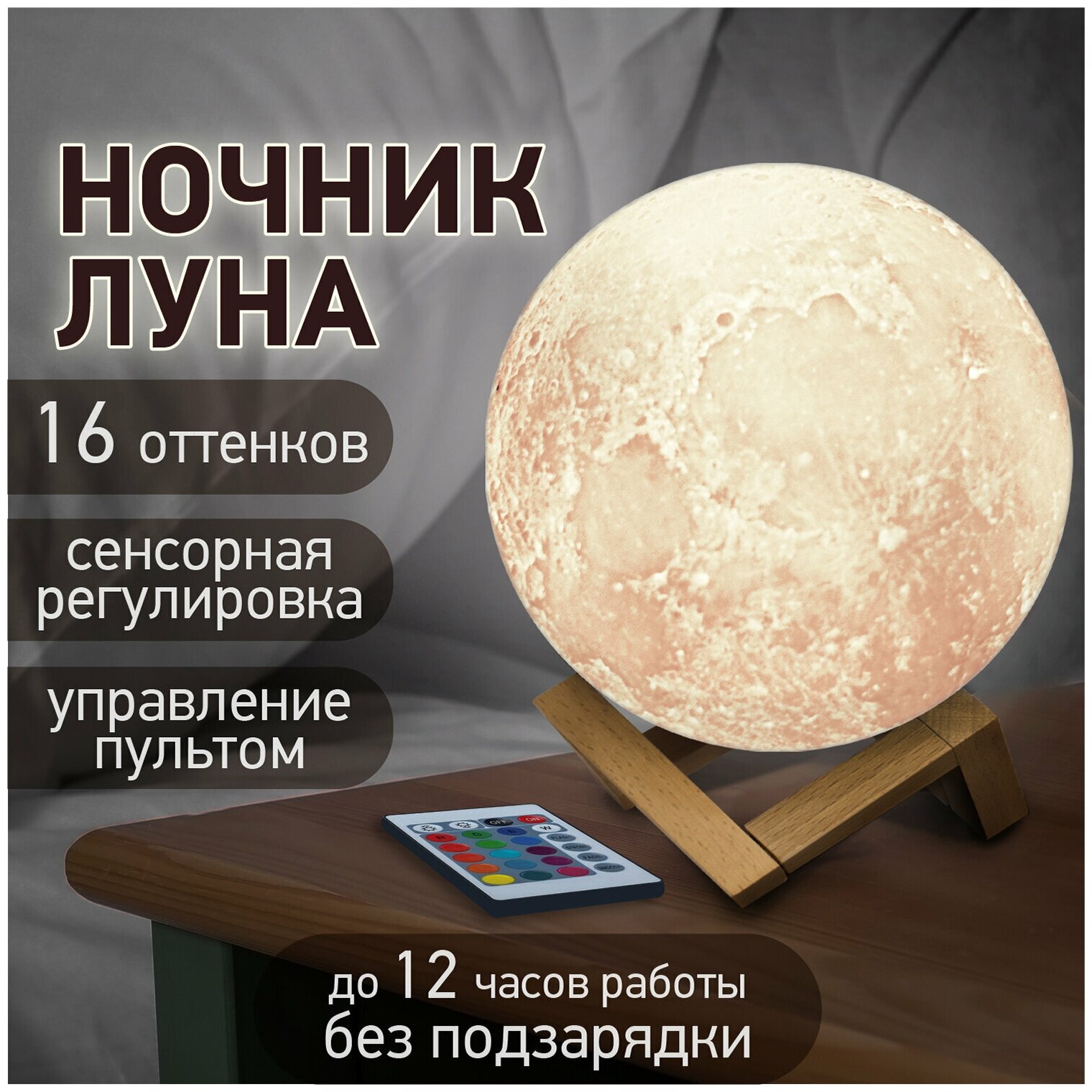 Светильник 3D "Лунная ночь" DASWERK - это уютный ночник, имитирующий поверхность луны, на стильной деревянной подставке. Благодаря мягкому таинственному свечению создает теплую, успокаивающую атмосферу. Прекрасно подходит под любой интерьер.