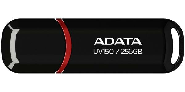 Флешка A-Data UV150, объём 256Gb, черный, пластик, интерфейс USB3.0, разъем закрывается колпачком, скорость чтения до 100МБ/с ()