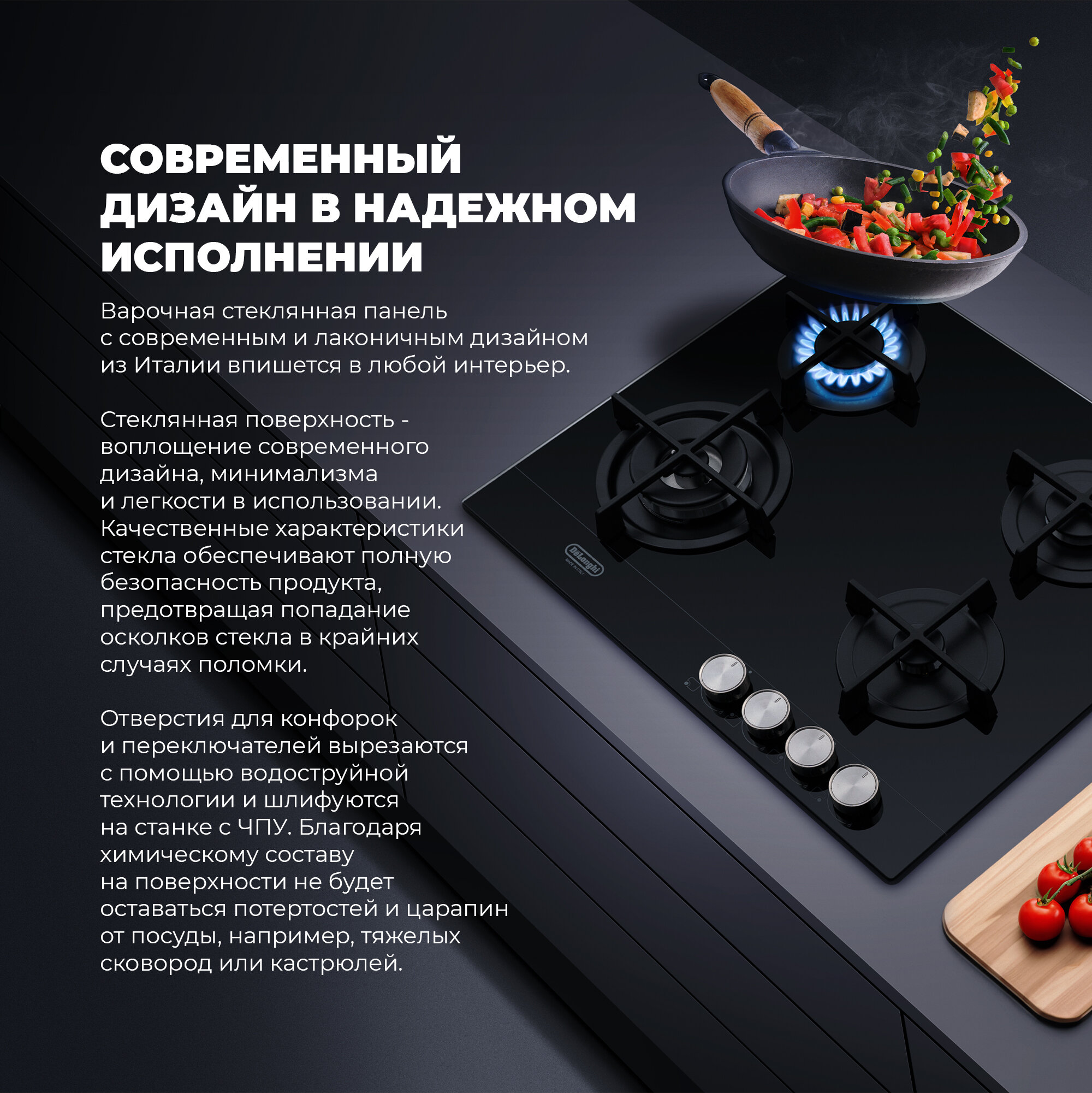 Газовая варочная панель DeLonghi NSL 460 N RUS 60 см черная WOK-конфорка автоматический розжиг газ-контроль