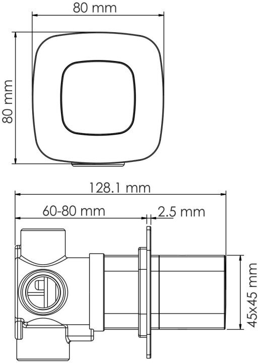 Переключатель на 3 выхода. Подключается к трем аксессуарам для душа на выбор: верхней душевой насадке, лейке для душа и настенному изливу.