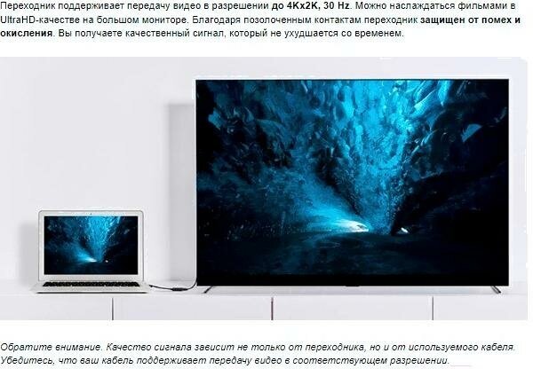 | Разъемы | DisplayPort (f) - HDMI (m) |