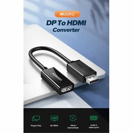 Конвертер UGREEN 40363_ DisplayPort to HDMI 4K*2K цвет: черный MM137