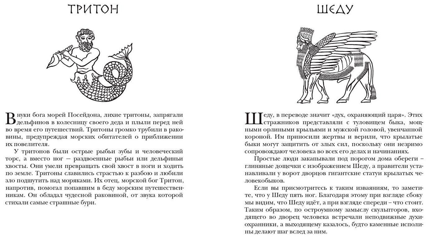 А чтобы знакомиться с мифологией было веселее, ребёнок может поиграть при помощи разрезанных страниц с изображением персонажей и забавных фраз-описаний. Страницы можно складывать в произвольном порядке, создавая новых невиданных существ!