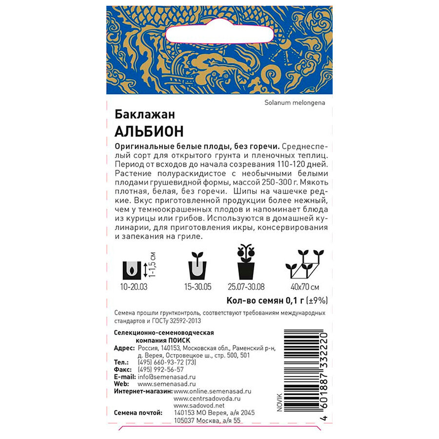 Семена Баклажан Поиск Поиск Альбион 01 г -