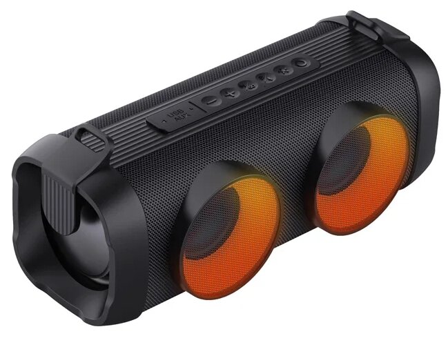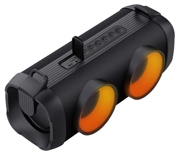 Встроенный аккумулятор позволяет прослушивать любимые композиции на протяжении 8 часов. Два широкополосных динамика по 5 Ватт, выдают суммарную мощность 10 Ватт. Динамическая подсветка портативной акустики раскрасит атмосферу светом. Функция TWS даёт возможность подключить в пару такую же систему и тем самым заполнить звуком помещение с разных сторон. Поддержка USB flash позволяет проигрывать музыку записанную на нее. Управление очень простое и интуитивное. Колонка заряжается через современный Type-C разъем. Небольшой вес 1.7 кг и удобная ручка для переноски.