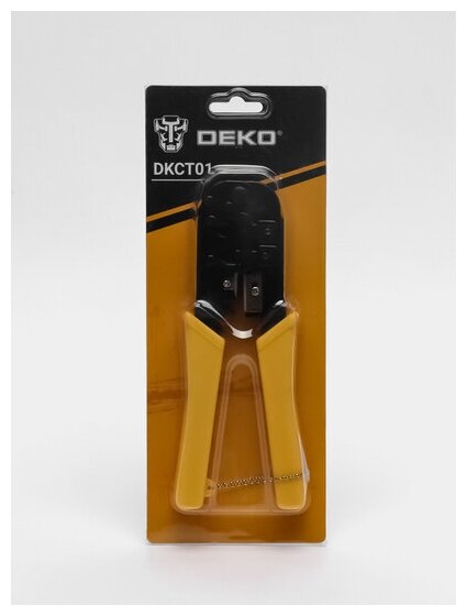 Обжимной инструмент для витой пары RJ45 (кримпер) DEKO DKCT01 используется для обжима разъемов RJ-45 (8P8C), а также для зачистки и резки кабеля.