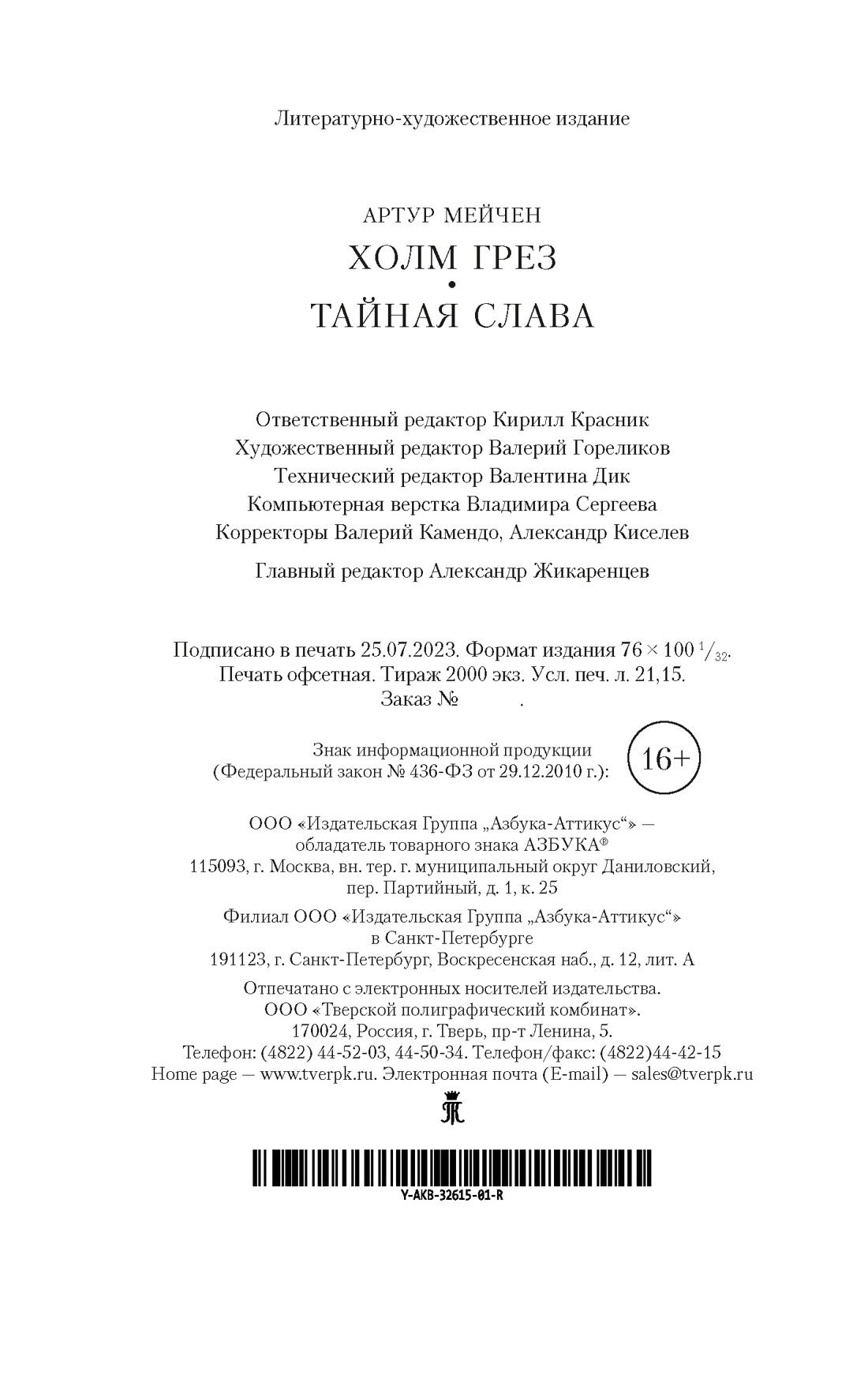 Сервис сравнения цен СкидкаГИД предлагает сравнить цены на товар «Книга: Холм грез. Тайная слава (Мейчен Артур); Азбука, 2023»