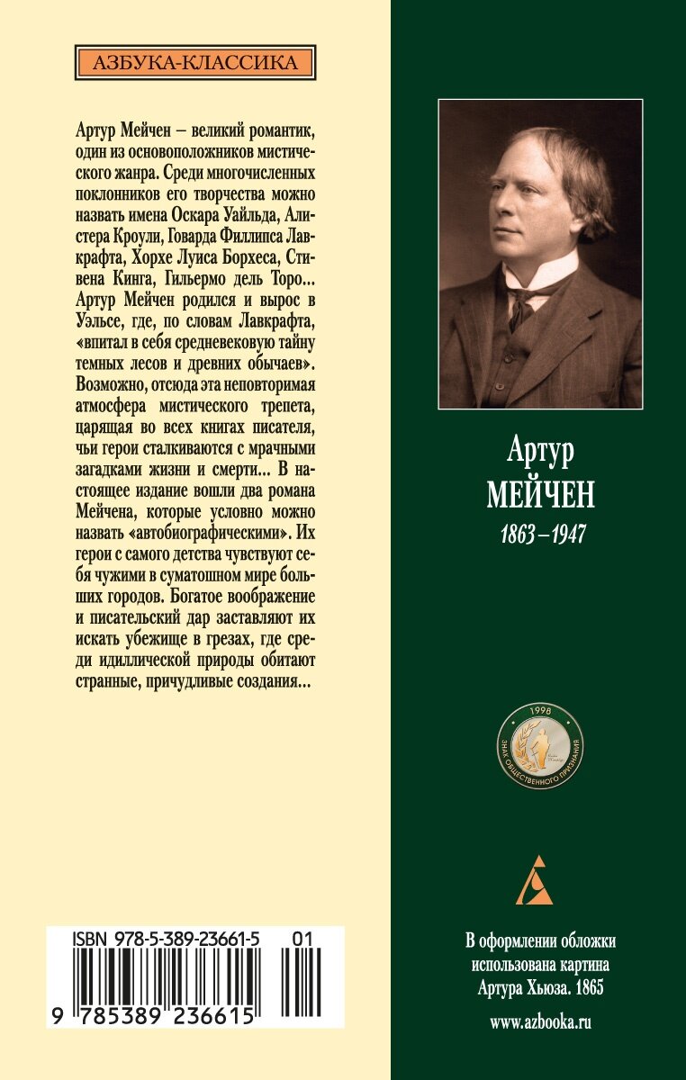 Артур Мейчен - великий романтик, один из основоположников мистического жанра. Среди многочисленных поклонников его творчества можно назвать Оскара Уайльда, Алистера Кроули, Говарда Филлипса Лавкрафта, Хорхе Луиса Борхеса, Стивена Кинга, Гильермо дель Торо... Артур Мейчен родился и вырос в Уэльсе, где, по словам Лавкрафта, "впитал в себя средневековую тайну темных лесов и древних обычаев". Возможно, отсюда эта неповторимая атмосфера мистического трепета, царящая во всех книгах писателя, чьи герои сталкиваются с мрачными загадками жизни и смерти…