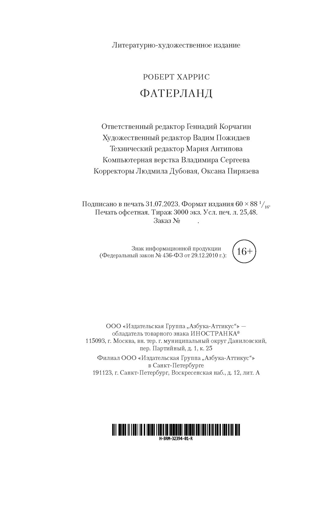 Книга: Фатерланд (Роберт Харрис); Иностранка, 2024