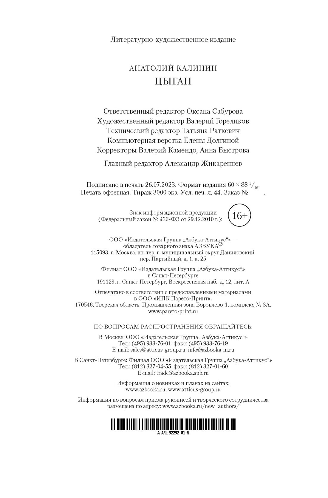 Книга: Цыган (Калинин Анатолий Вениаминович); Азбука, 2023