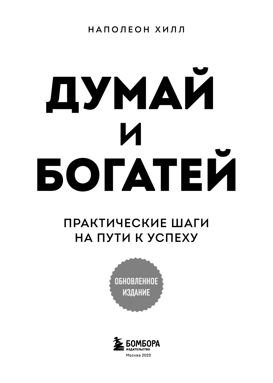 Эта книга — обновленное и переработанное издание всемирно известного бестселлера Наполеона Хилла. В ней акцент смещен с того, что делать, на как это сделать. Как перехитрить свои страхи, как найти продающую идею, как овладеть формулой уверенности в себе, как развить настойчивость и обогатиться, не жертвуя ценностями.