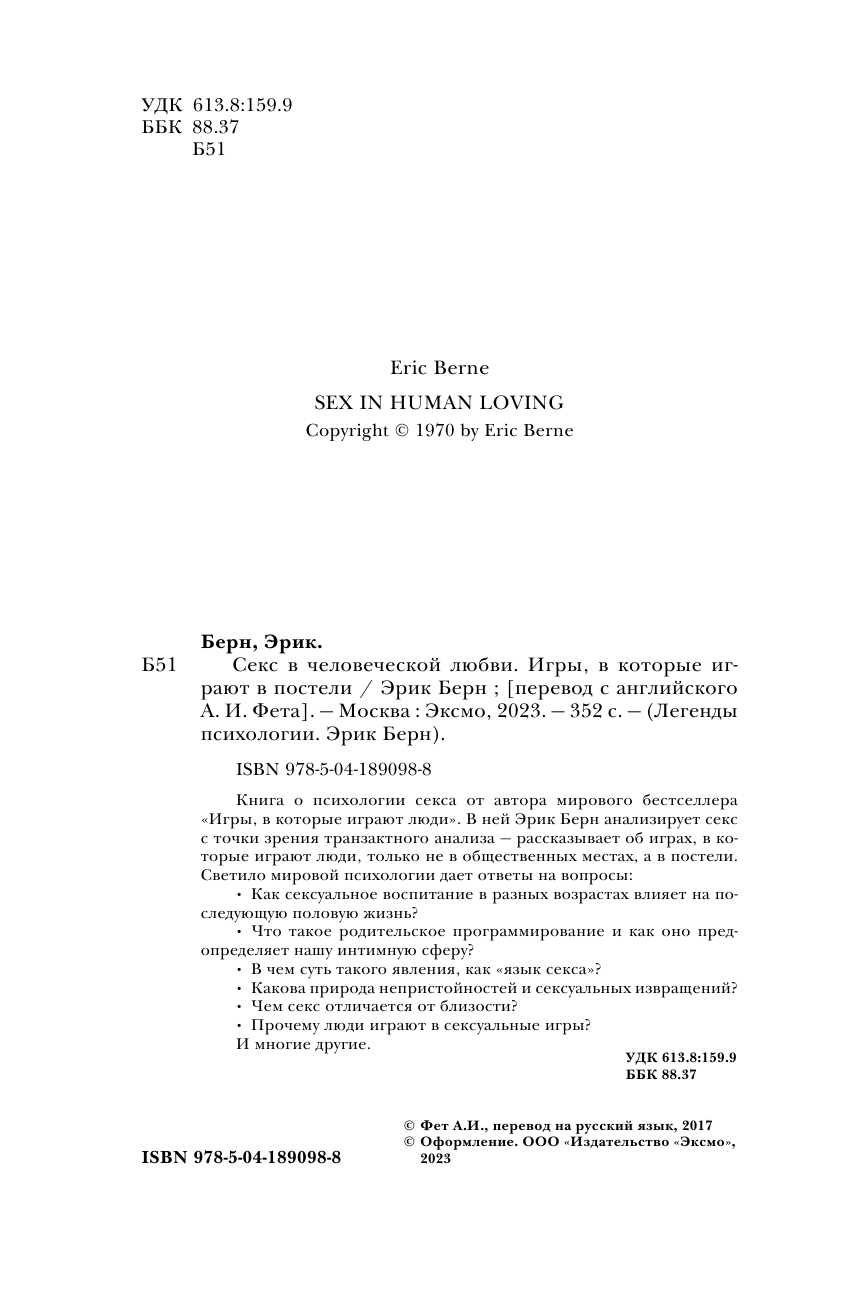 Секс в человеческой любви. Игры в которые играют в постели (Берн Эрик); ООО "Издательство "Эксмо", 2023