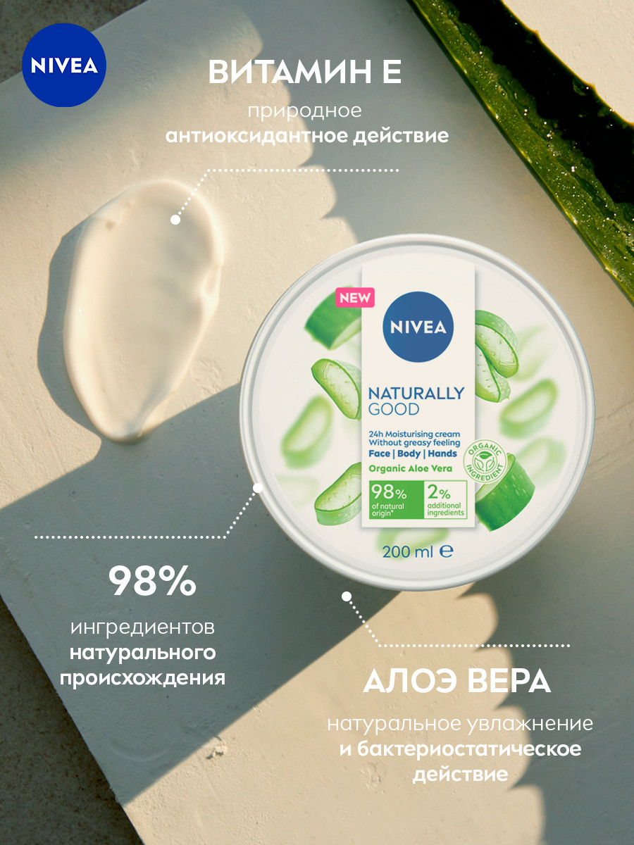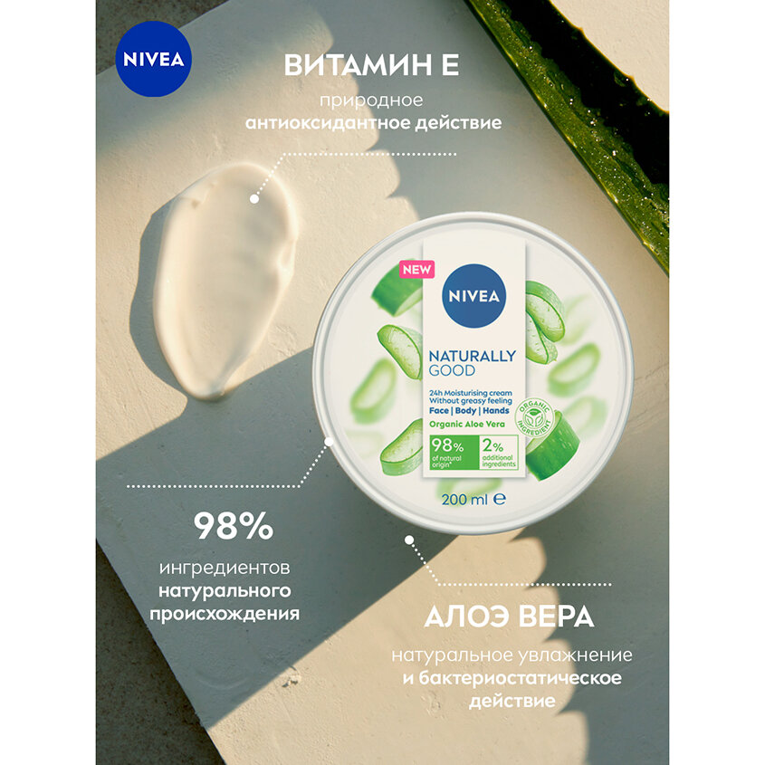 Крем для лица рук и тела увлажняющий Naturally good organic Aloe vera Nivea/Нивея банка 200мл Beiersdorf Manufacturing Tres Cantos SL (1092467)