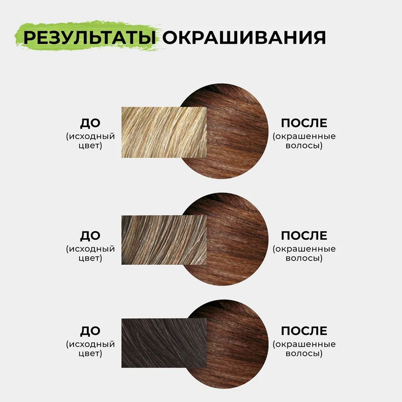 | Эффект | блеск; восстановление; закрашивание седины; увлажнение; укрепление |