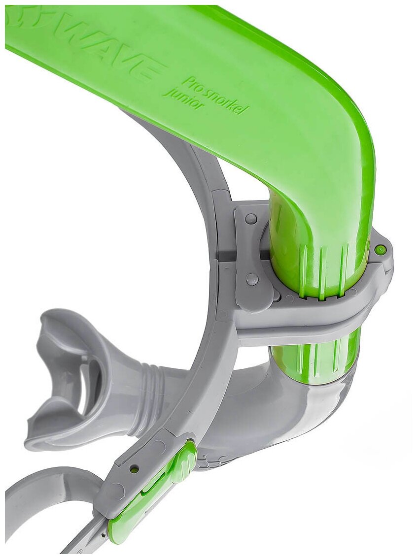 PRO SNORKEL junior | M0777 02 0 03WОписаниеТренажер для плавания PRO SNORKEL Junior от Mad Wave предназначен для регулярных тренировок в бассейне. Тренажер поможет усовершенствовать правильную технику гребка, положение тела и головы. Трубка имеет отличные гидродинамические характеристики для предотвращения лишнего сопротивления в воде, а комфортный эргономичный загубник, разработанный специалистами Mad Wave, позволит вам полноценно сконцентрироваться на технике плавания. Тренажер PRO SNORKEL оснащен удобным регулируемым фиксатором и ремешком из силикона, которые надежно удерживают его даже при выполнении спортивных поворотов, а также дополнительным дренажным клапаном для отведения остатков воды.особенностиГидродинамическая форма трубки - уменьшает сопротивление в воде;Усовершенствованный нижний дренажный клапан - удобное и быстрое отведение остатков воды;Усовершенствованный эргономичный загубник - повышенный комфорт при использовании, отсутствие протекания;Жесткое и надежное крепление трубки - удобство и безопасность в использовании;Удобная система авто-регулировки ремешка - быстрая и надежная фиксация.Составтрубка (поликарбонат 100%), ремешок (силикон 100%), фиксатор ремешка (поликарбонат 100%), загубник (силикон 100%), держатель трубки (поликарбонат 100%)