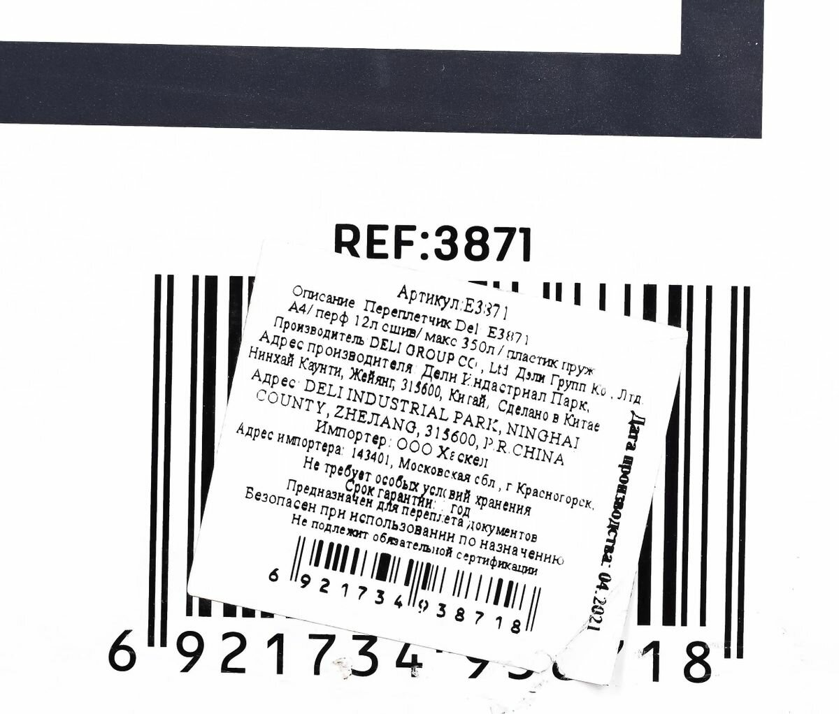 Переплетчик Deli A4/перф.12л.сшив/макс.350л./пластик.пруж. E3871