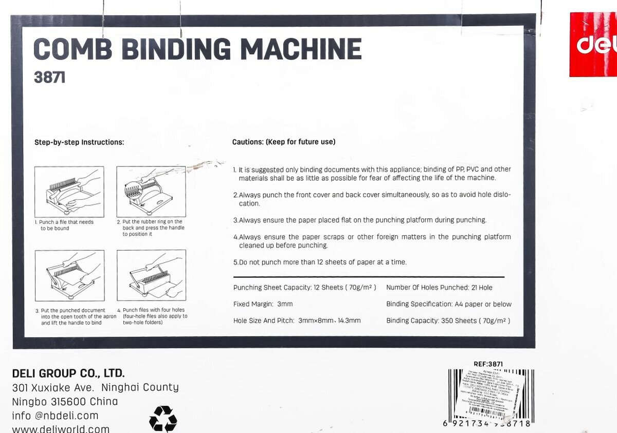Переплетчик Deli A4 перфорирует 12 листов сшивает 350 листов пластиковые пружины