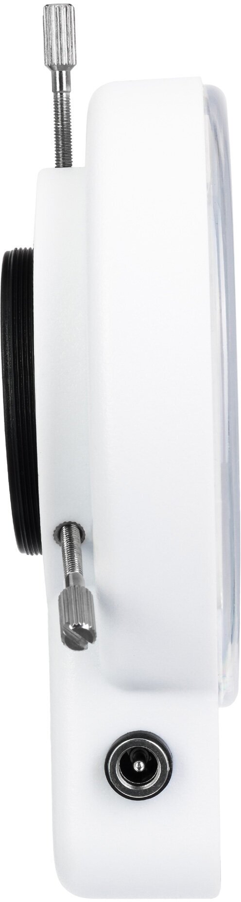 Кольцевой осветитель Levenhuk LED 144 используется для ведения наблюдений в отраженном свете и создает бестеневое освещение рабочей области. Он состоит из 144 светодиодов регулируемой яркости, которые светят в диапазоне около 6500 К – это соответствует холодному белому оттенку освещения. Такое освещение наиболее востребовано у тех, кто проводит высокоточные работы с использованием стереомикроскопа, так как позволяет видеть мелкие детали образцов наиболее четко и ясно. Установка осветителя производится на защитный кожух объектива микроскопа при помощи трех винтов (на наружную канавку). Также в комплектацию включен резьбовой переходник – он позволяет закреплять осветитель на стереомикроскопах, у которых наружная канавка отсутствует.