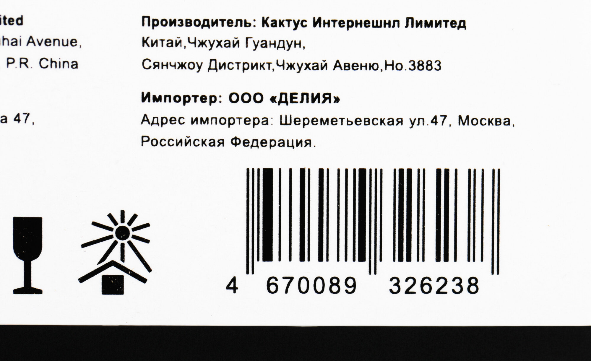 | Место изготовления товара | КИТАЙ |