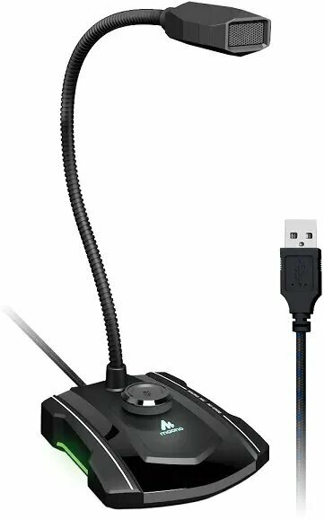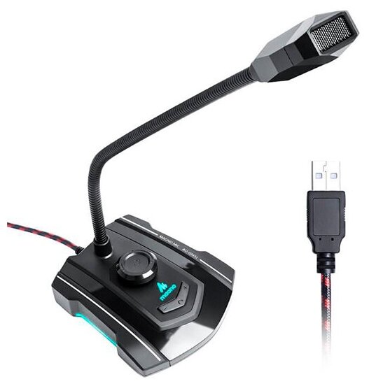 Неплохой микрофон для общения и игр за свои деньги. Сначала показался тиховат, но собеседнику меня нормально слышно. Качество звука хорошее. Подсветка логотипа на основании не отключается даже при выключенном компьютере. На основании есть USB вход для флешек, это удобно.