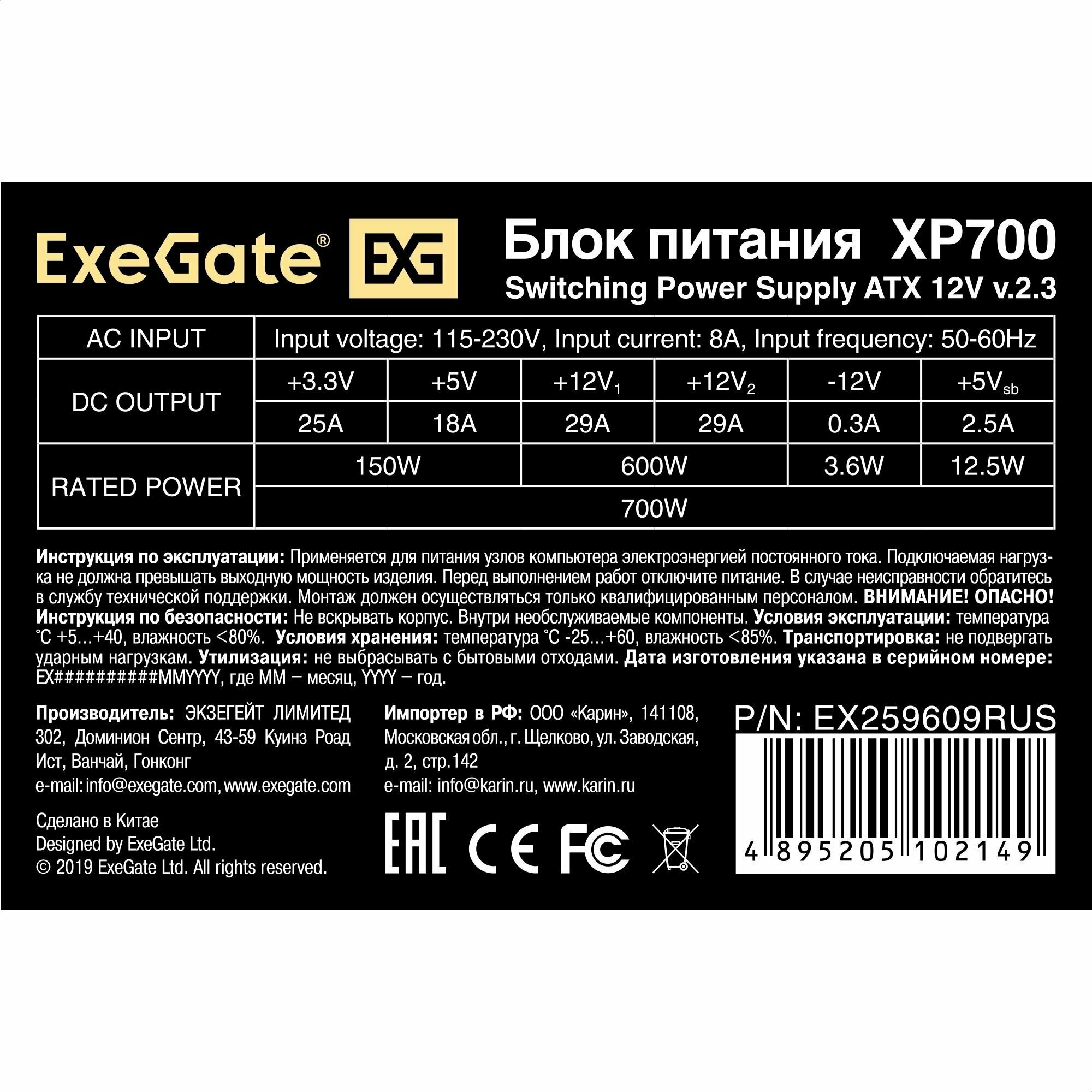 Блок питания ExeGate 700W XP700 ATX black (EX259609RUS)